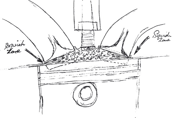 Cuanto más "apretada" quede esa zona en el PMS, más disparada y arremolinada sale la mezcla desde ella hasta el centro de cámara mejorando la combustion. Con el añadido, cosa que yo no sabía y que me ha dicho esta gente, de que se protege la junta de culata frente a la llama.