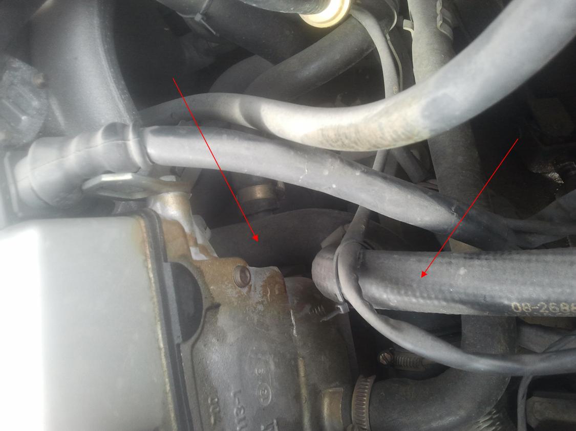 Aquí subo las fotos que he podido hacer. No se ve muy bien donde termina el tubo porque esta bajo la admisión y no lo tengo desarmado. Da la impresión de que va al mismo sitio independientemente de que tenga ABS o no, aparte de alimentar la calefacción.