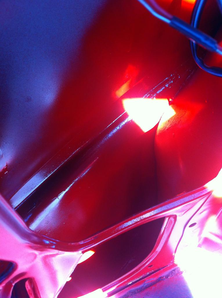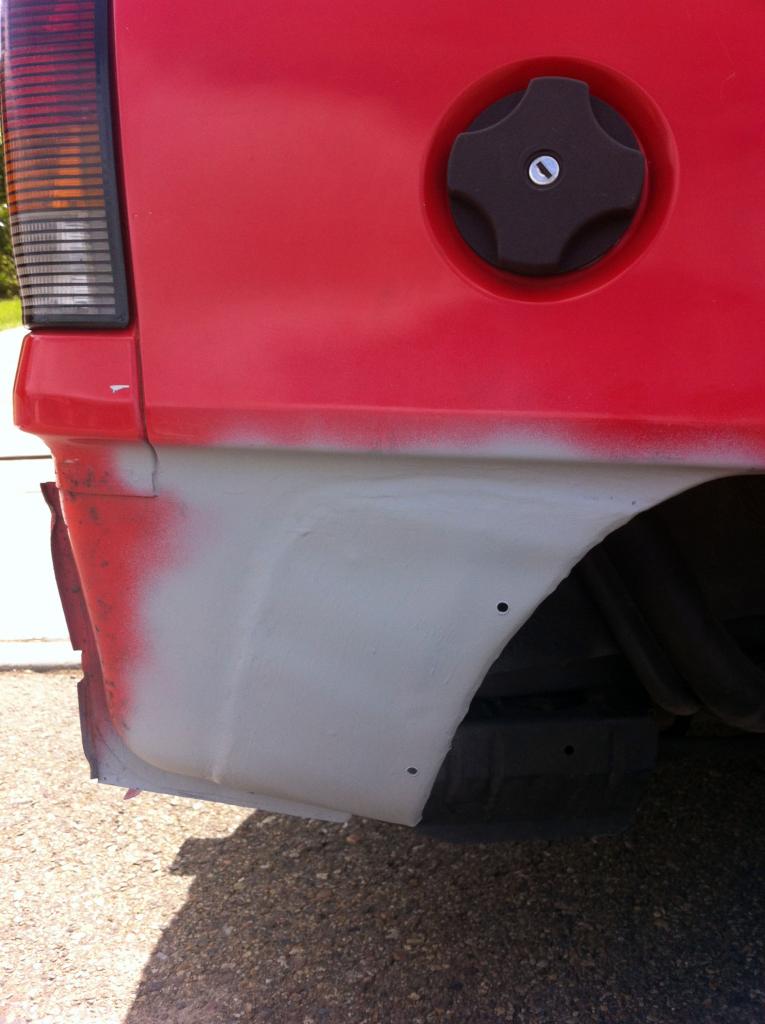 2.Las aletas traseras estaban oxidadas en la parte que tapa el parachoques, asique en la izquierda, que solo tenia un poco de oxido, lo lije bien, di convertioxido, aparejo y pinte: