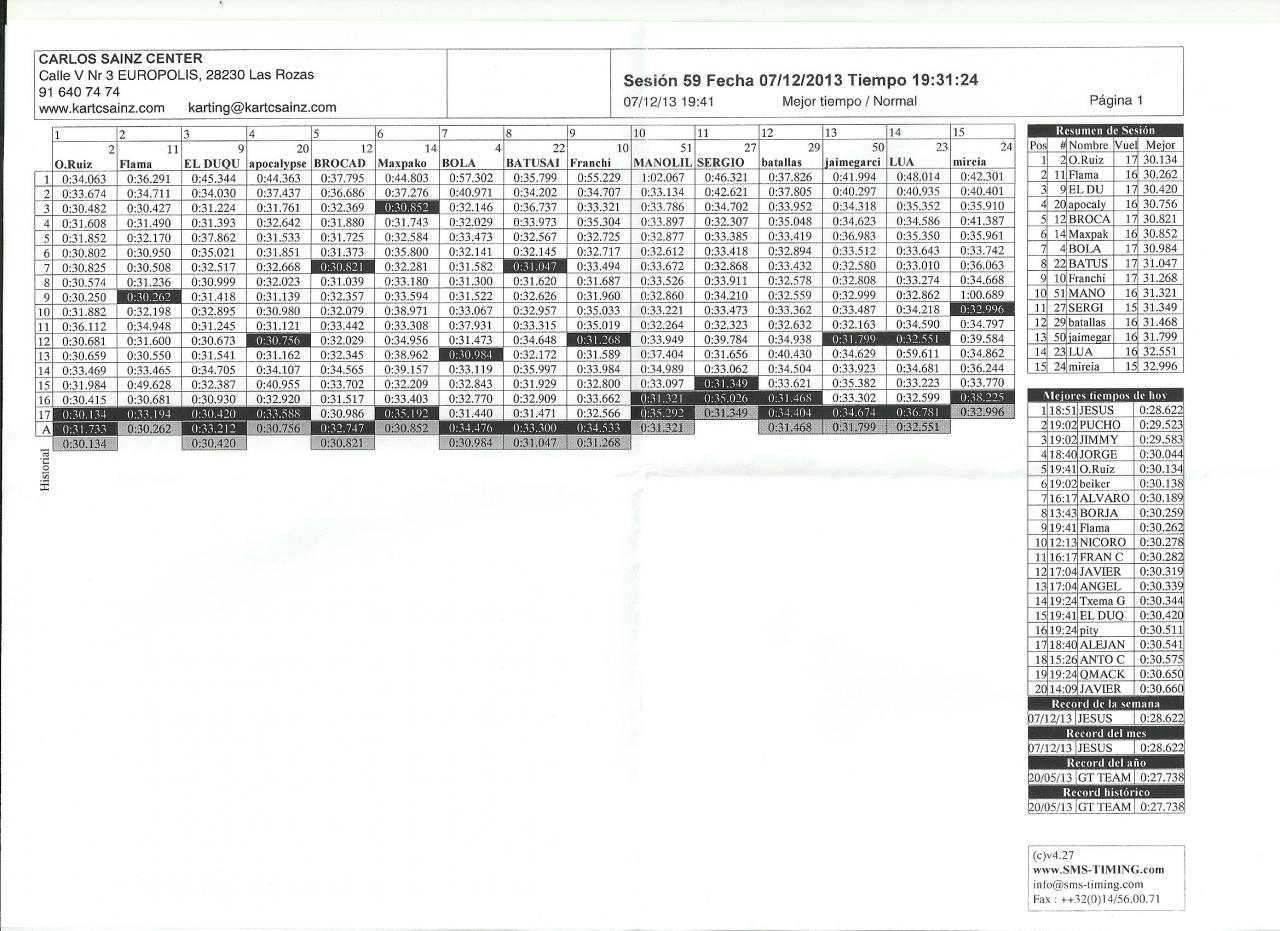 Pongo aquí los tiempos de mi grupo, si alguien tiene los de los otros que los suba y ponemos la general!