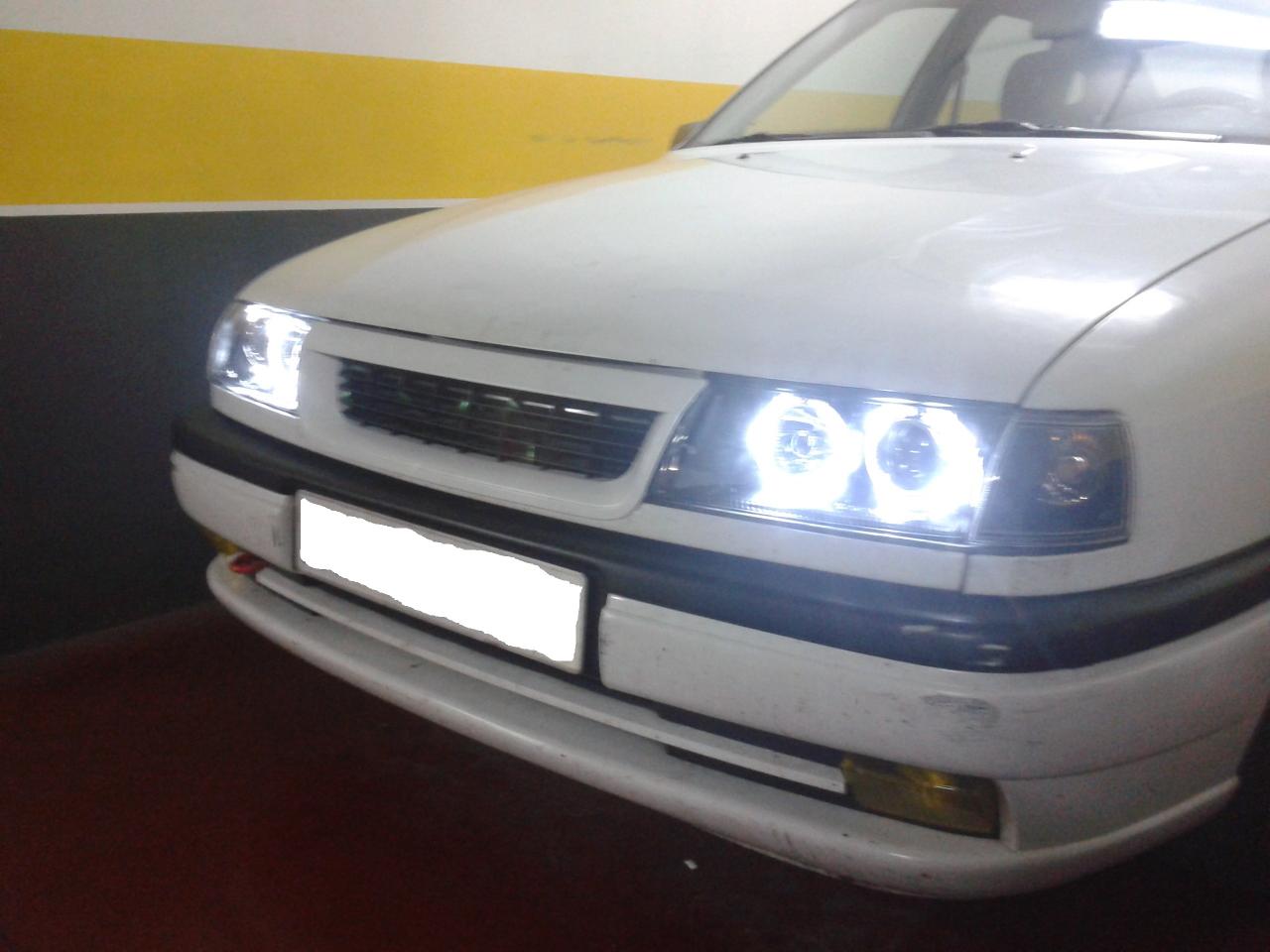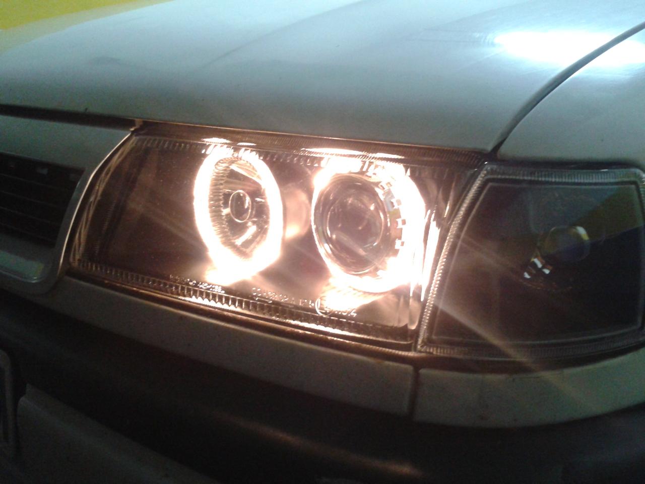 el 8v lleva unos muy exclusivos bifocales negros y el 16v venia con sorpresa en el maletero y le puse los angel nada mas traermelo