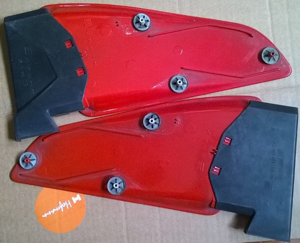 Yo tengo unas. En color rojo muy gastado, pero creo recordar que estaban impecables, hasta con las arandelas de sujeción.