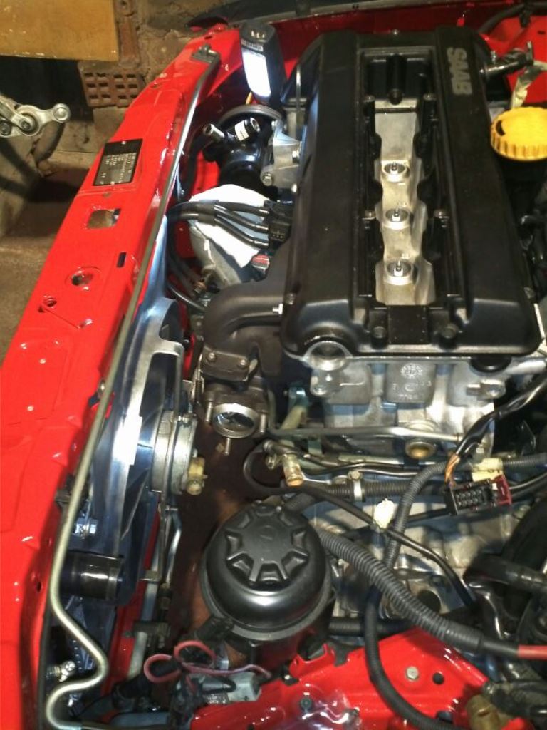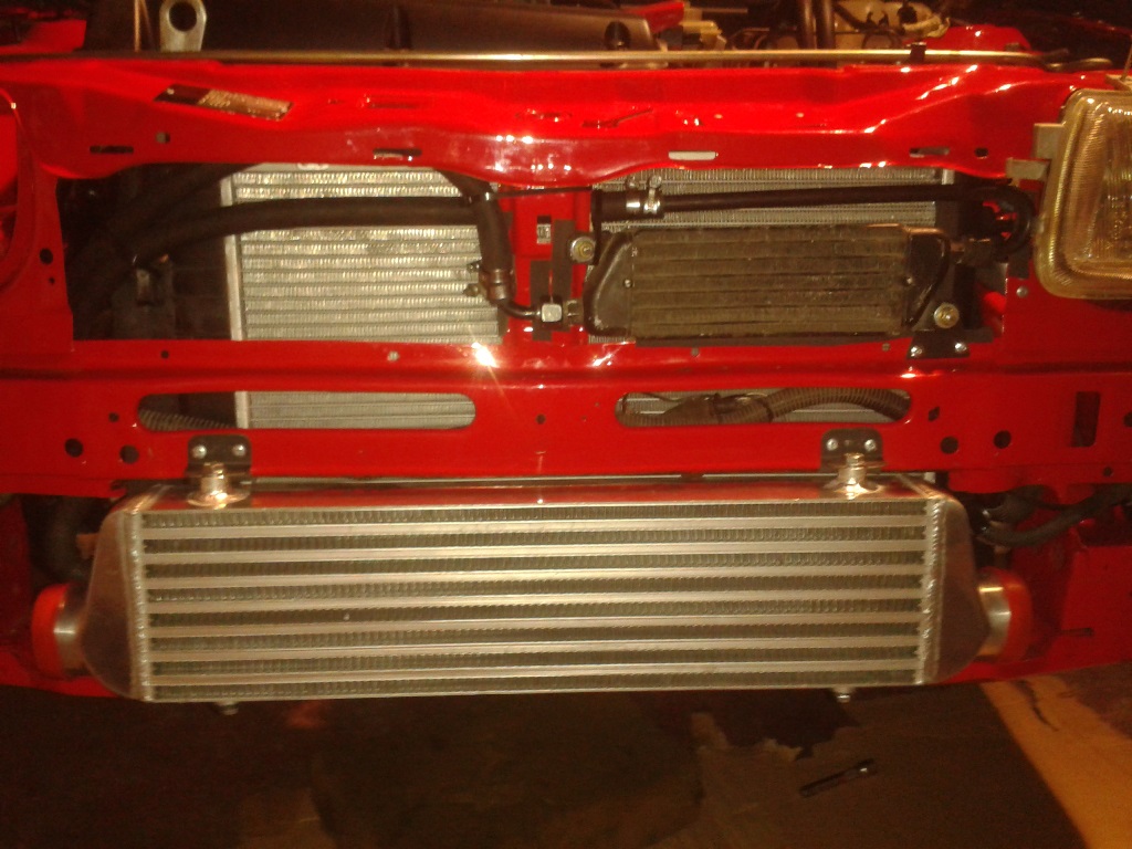 El radiador lo tuve que ubicar bajo el travesaño superior del frente, ya no dispone de tanto espacio como si fuera un motor C20LET, entra un poco más justo ya que los colectores sobresalen mas .