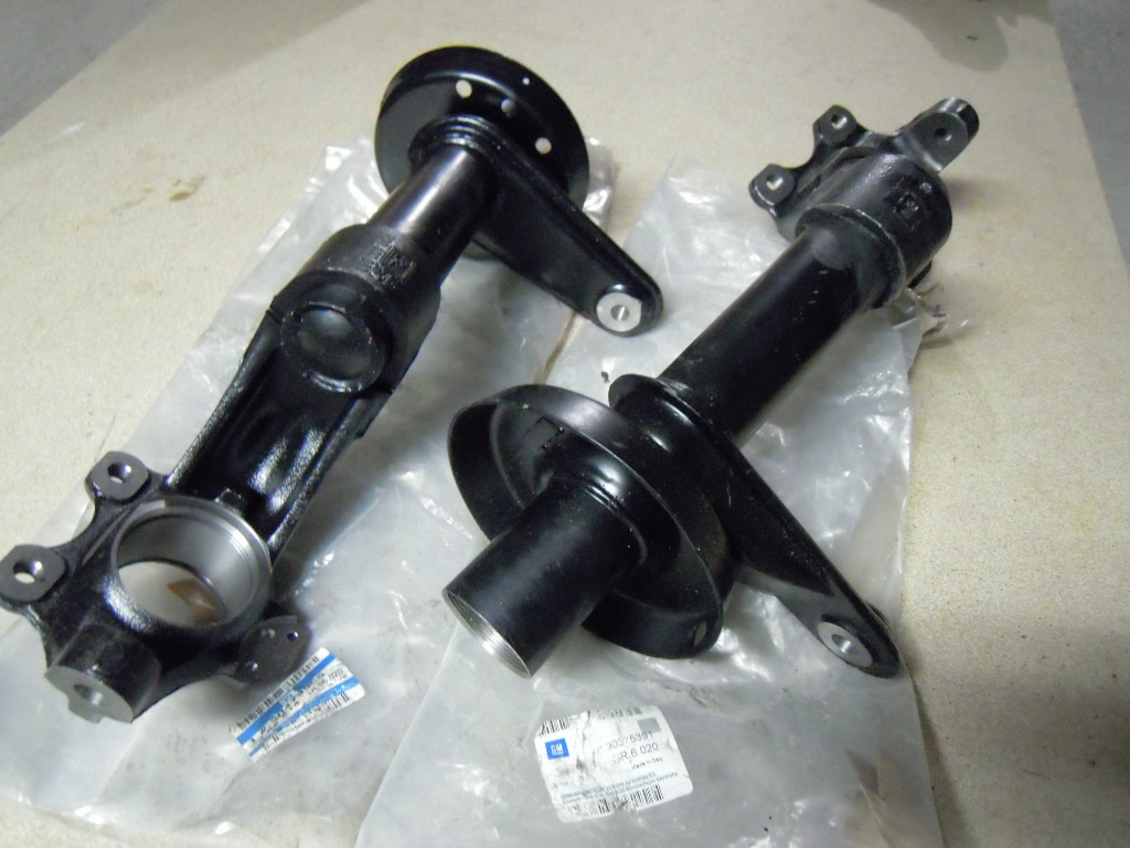 Puesto ya el motor ,latiguillos, manguitos.... empecé a preparar la manguetas, puse de momento unos selex amarillos retarados, con muelles H&R y copelas excentricas , para corregir un poco la caida que tiene con los trapecios de saab.
