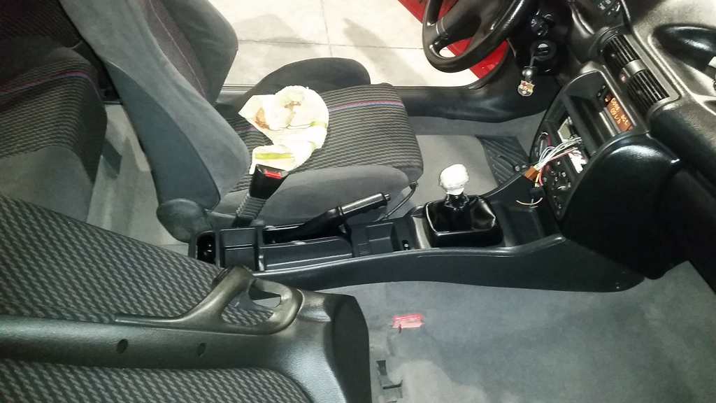 Consola central tratada con el restaurador, las fundas de freno y cambio igual y como nuevas. colocacion del volante original....