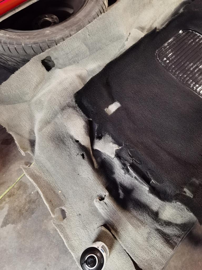 Despues de desmontar, quitar oxidos (solo tenia 2) y pintar todo el interior, los tapizados tenian manchas que no salian, asique los he teñido de negro.