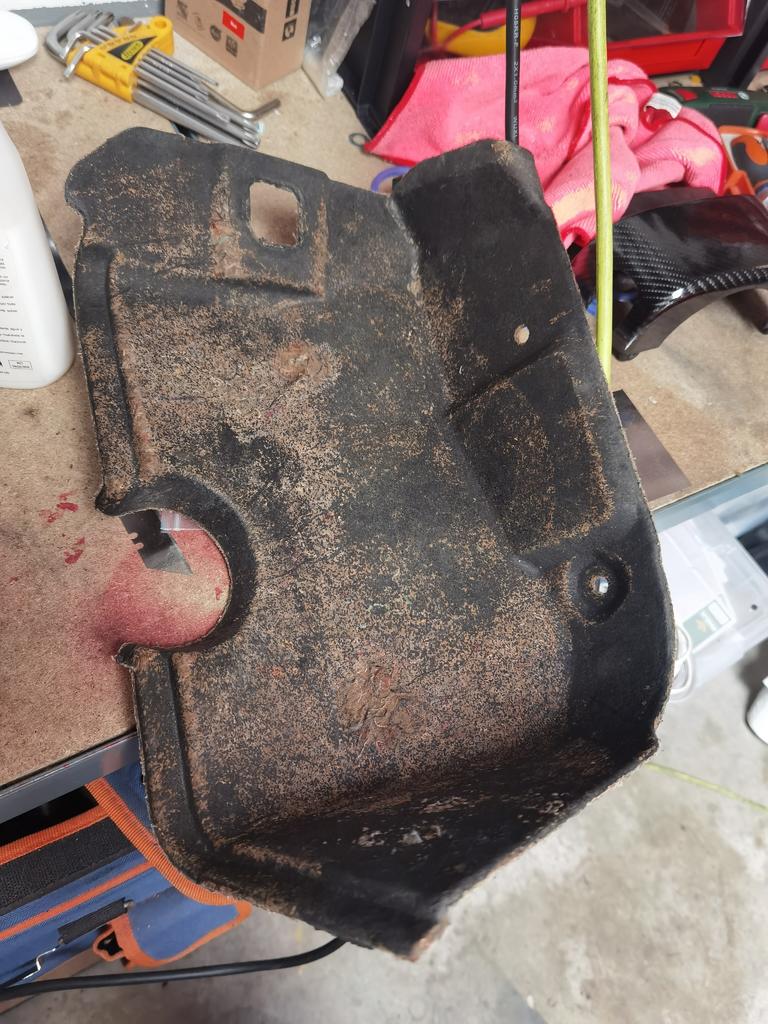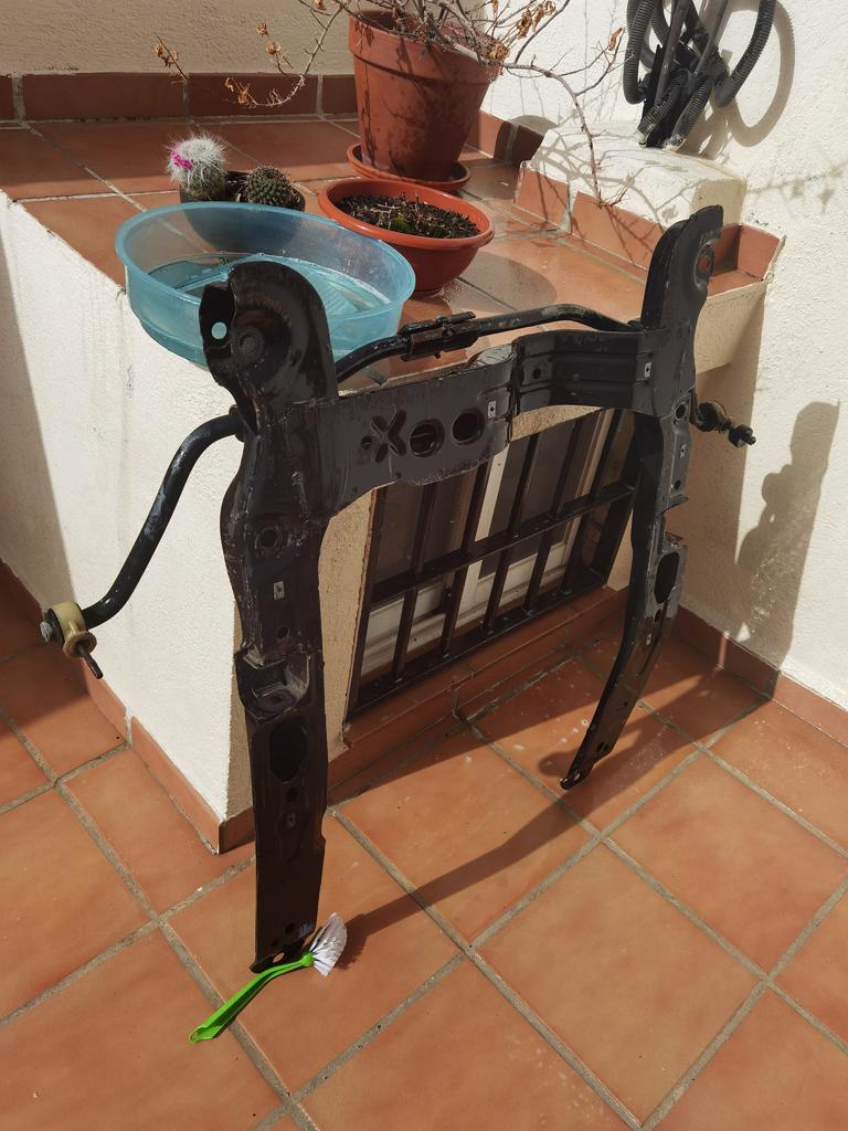 Desmonte la cuna del motor (creo que se llama asi, sino corregid mi ignorancia) y me la subi al patio a fregarla, aun me queda todavia mucho ya que tenia una capa increible de mierda.
