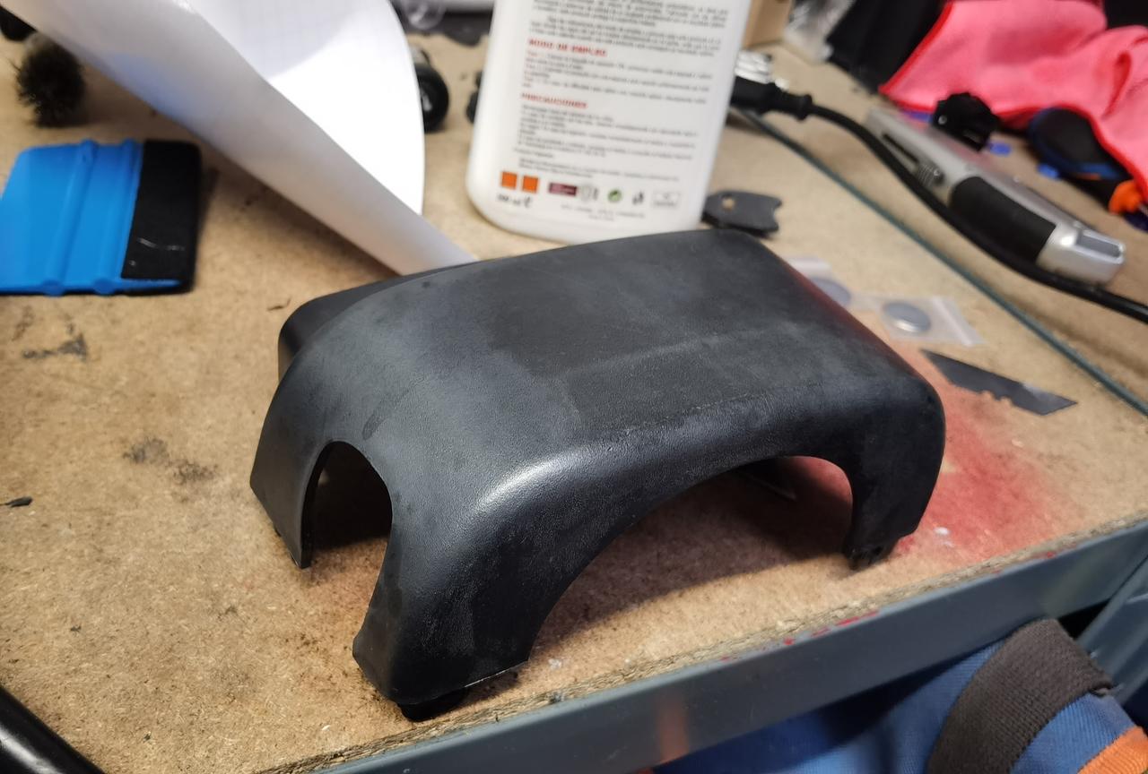 Con respecto a piezas del interior, como ya he comentado anteriormente, estaba todo en la mierda, arañazos, en algunos casos tornillos, superglue, grapas, etc... Asique estoy vinilando todas las piezas del interior.