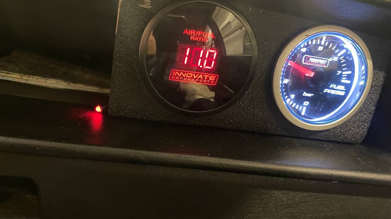 Hay probados dos juegos de inyectores, y los q ahora monta eran los q había anteriormente donde la mezcla iba perfectamente. Sensor de temperatura no medí resistencia pero lo q me devuelve el torque es lo q lee la ecu, ya veis q en el video esta a 100º así q no creo q sea eso. Manometros, en la foto se aprecia uno, q no esta en escala pero me da una pista sobre q no caiga en exceso y q suba unicamente cuando el turbo sopla. Pero a ralentí con la presión buena, llevo otro manómetro en la rampa, ya va rico