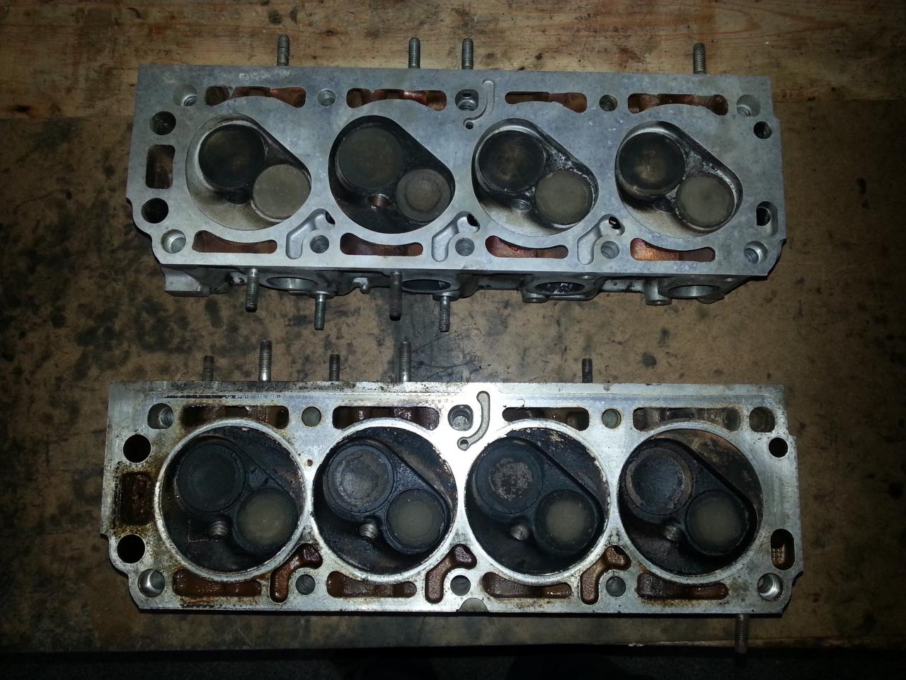 Aqui vemos las dos camaras, la original con las valvulas con cupula y la Mantzel con las valvulas sobremedida y la de admision con fondo plano para aumentar la compresion