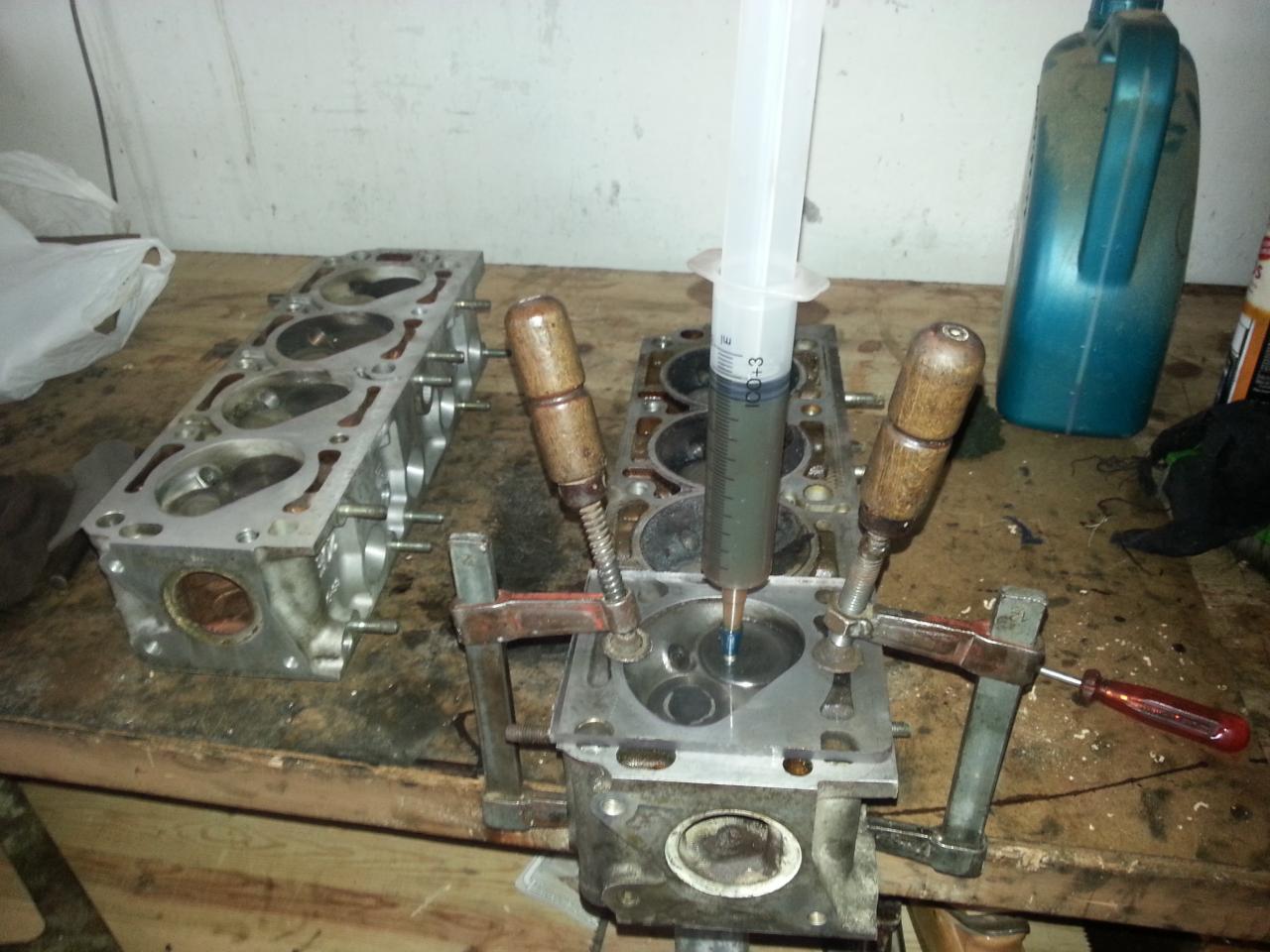 Cubicamos ambas para comparar. La Mantzel con el gran rebaje que lleva y el añadido de las valvulas planas eleva la CR a unos notables 11,8:1 (volumen de la camara estandar de 45cc vs los 38cc de la Mantzel)