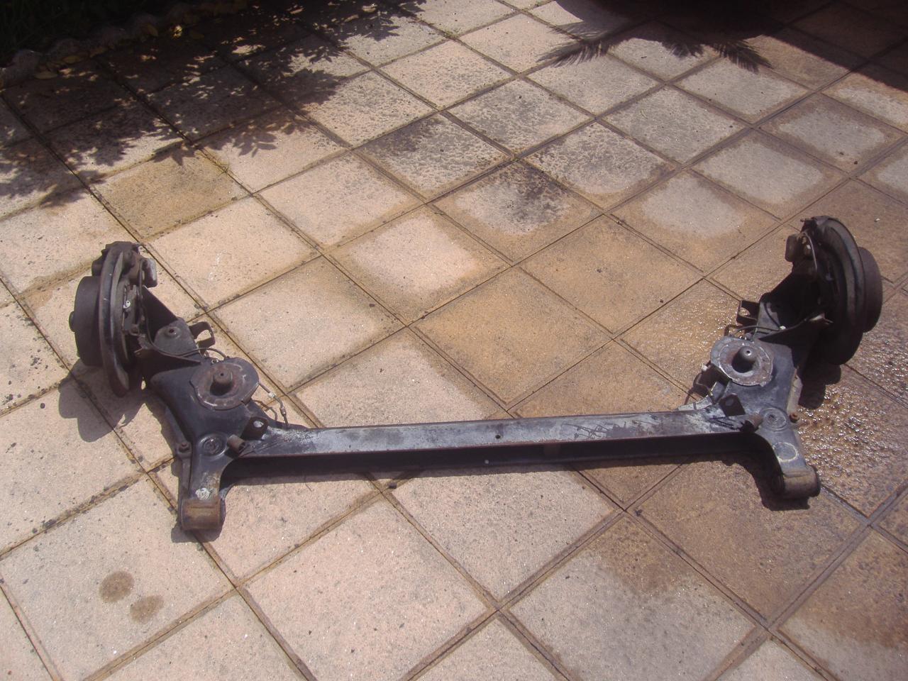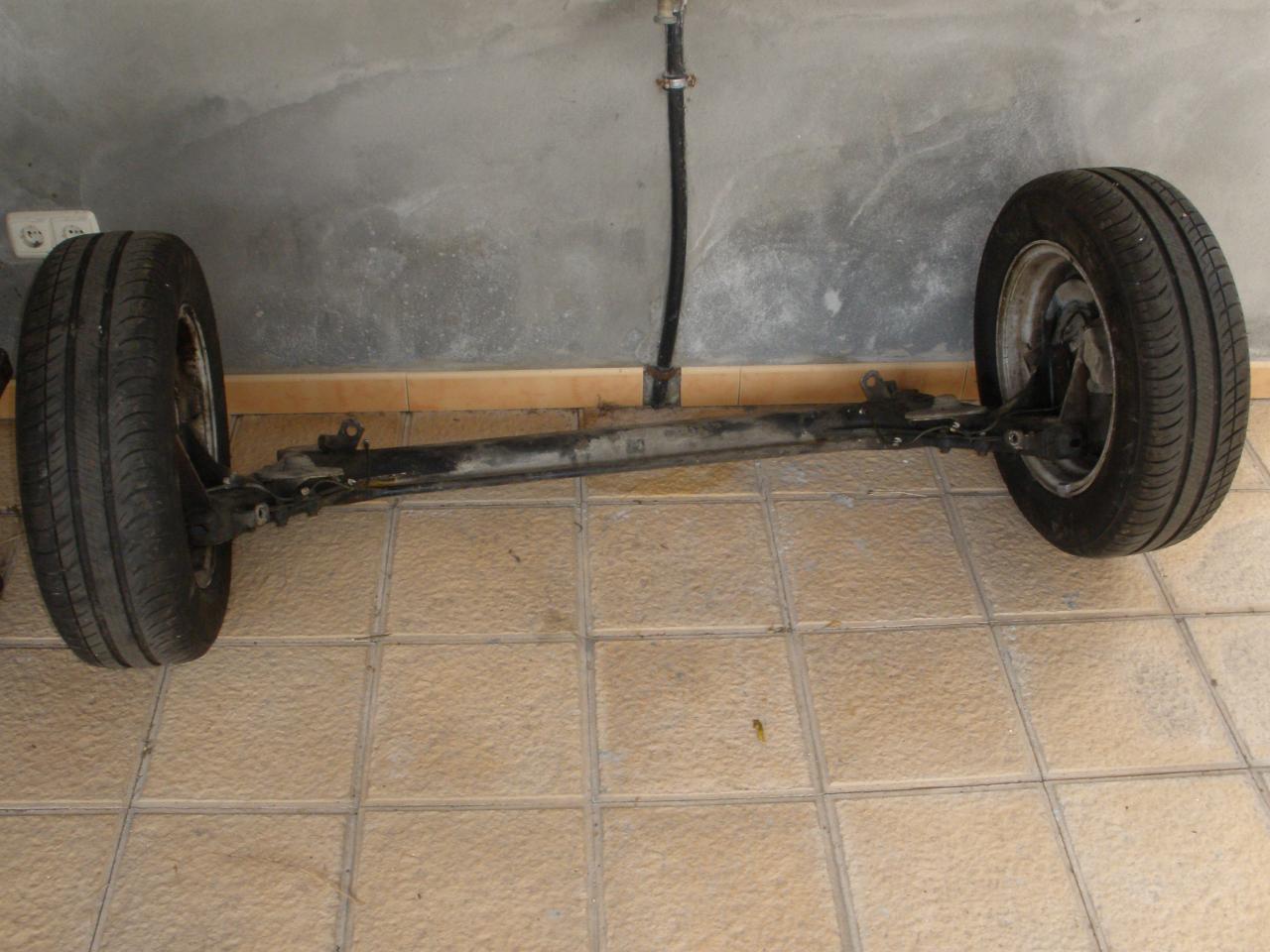 El eje trasero: Pues del eje trasero, desmonté los discos, las pinzas de los frenos, las barras estabilizadoras.... y demás, así que tocará lijar dónde haya óxido y luego pintaré y protegeré bien el eje.
