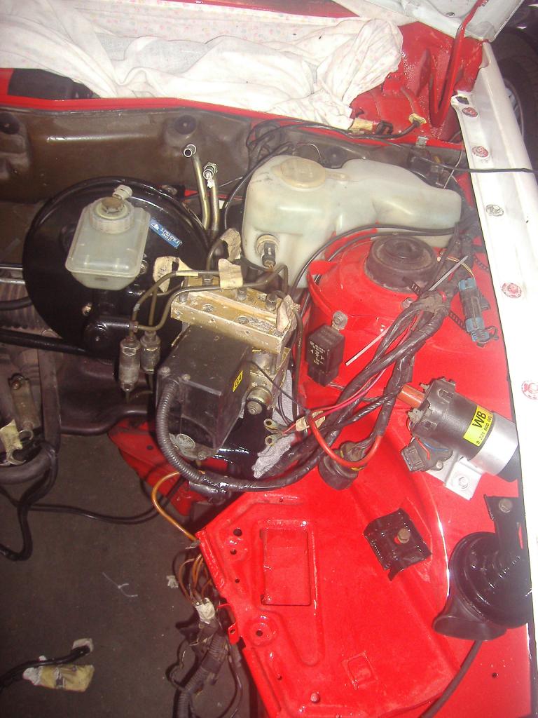 Bueno, esta tarde (bastante infructuosa por cierto), me he dedicado a colocar en su sitio el servo y "el abs", entre que andaba con prisas y tal y cual, lo he hecho con menos paciencia de la que me hubiese gustado, pero bueno, el servo ya lo he dejado totalmente listo y el abs lo dejé más o menos en su sitio, aunque me queda apretarlo y conectar los tubos del líquido de frenos, ya que hoy únicamente los he dejado presentados.