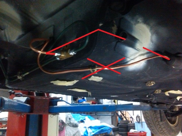 Muy buen avance. No habría sido mejor pasar el tubo de cobre por el tubo por donde pasa el cable original (me refiero al que está adosado a la chapa, debajo del coche). Hubiera quedado mejor presentado y con menos curva...