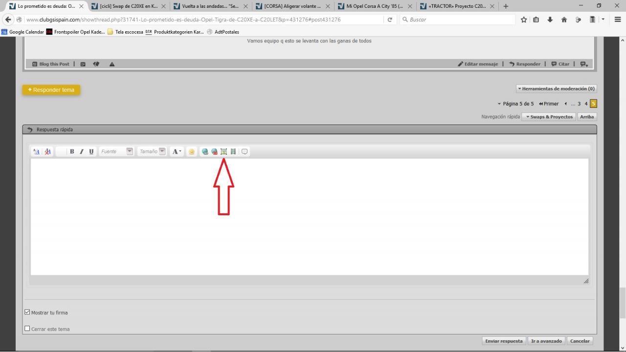 Gracias por la explicación Cicli, lo hago siempre con ese boton pero como no alojo fotos en mi ordenado uso la opción de subir desde url..es raro que no se vean, siempre lo habia hecho asi! Yo sí las puedo ver bien desde el pc, el movil y usando tapatalk. Supongo que l ser el propietario de la cuenta sí me deja verlas. Voy a ver si lo puedo arreglar.