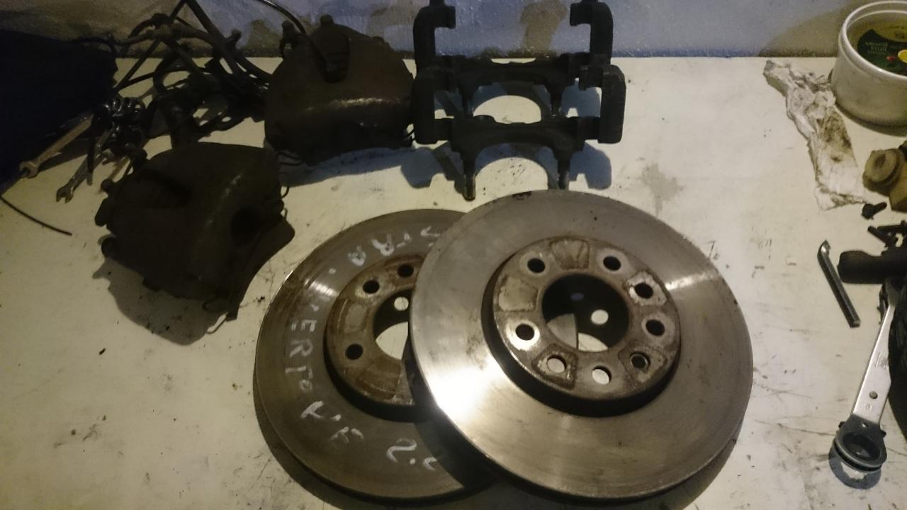 Limpieza y presentación y retaladrado a 4x100 de los frenos de 288mm, precedentes de un Opel Vectra B.