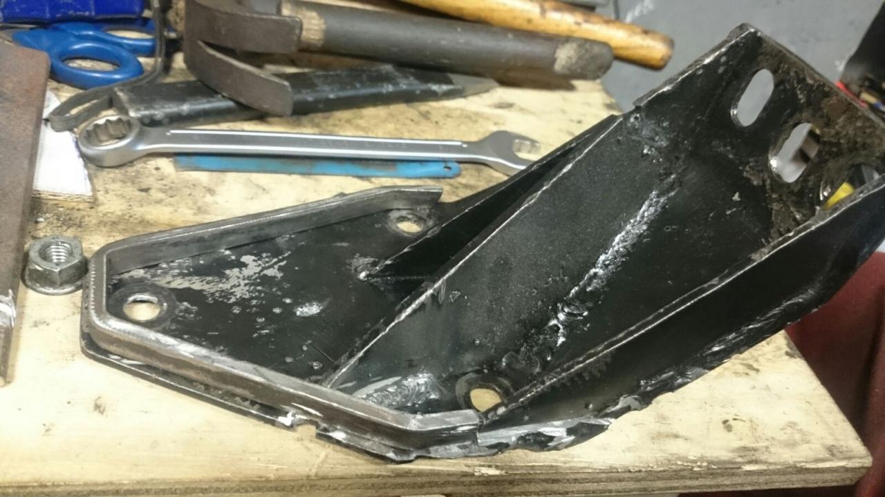 Me encontré con varias sorpresas al desmontar. Una de ellas fue el soporte motor del lado de la distribución. No aguanto las retorcidas del par del C20LET. Estaba rajado por las uniones de soldadura y todo retorcido.