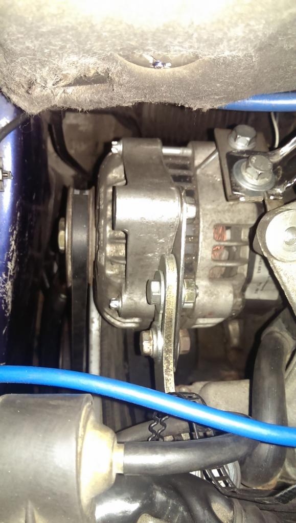 El alternador era del pleistoceno, así que me decidí a adaptar uno moderno de 100Ah. Tuve que cambiar la polea ya que traía una poli-V, pero cosas de la vida, encajó perfectamente.