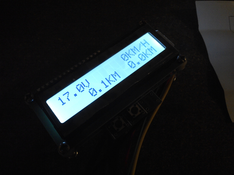 Para el cuadro ya tengo por fin velocímetro digital de mínimas dimensiones. Pedimos kike y yo uno para cada uno. Tiene velocímetro, km totales y parciales y voltímetro.