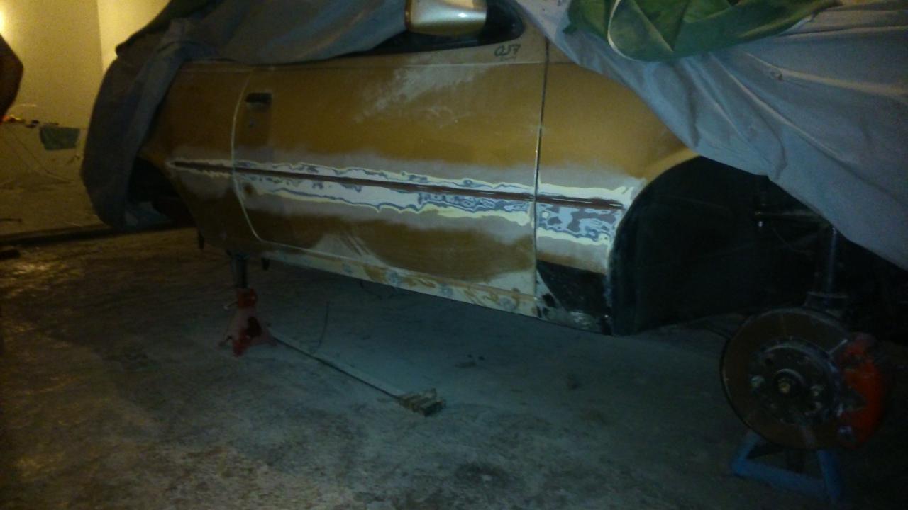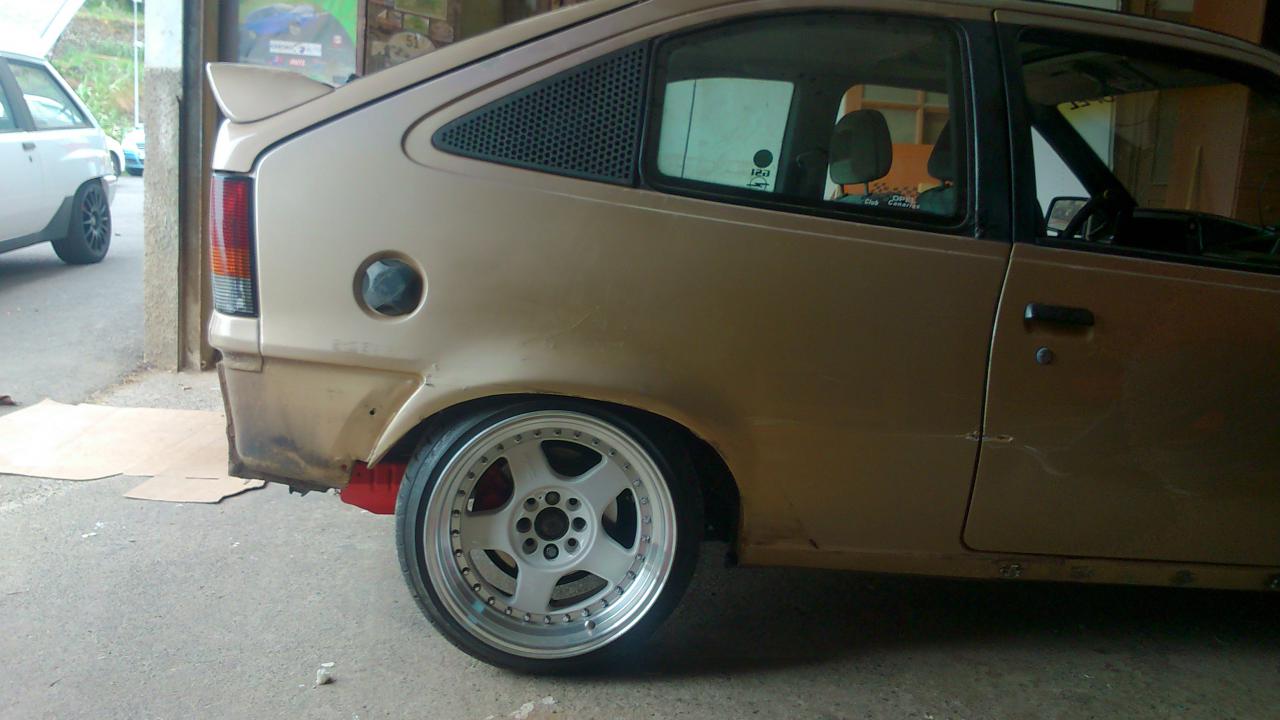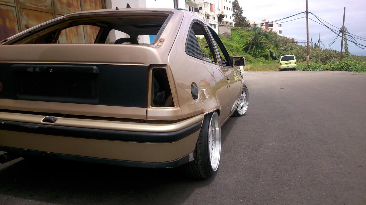Ya con las llantas pues me puse manos a la obra, lo primero fue ponerle el bajo frontal zender y soltando aletas y capo ajustar bien el parachoques delantero al frontal, una vez todo ajustado lo siguiente era bajar la suspensión para poder hacer los aletines, como el presupuesto es ajustado cada mes por ahora se ara ala antigua ausanza cortando muelles. el domingo ya lo deje a medias, todavía me queda bajarlo mas del frontal y ajustarlo un poco mas de atrás aun queda mucho pero ya se va pareciendo a lo que tenia en mente...