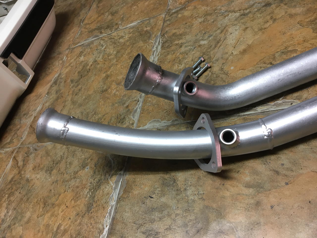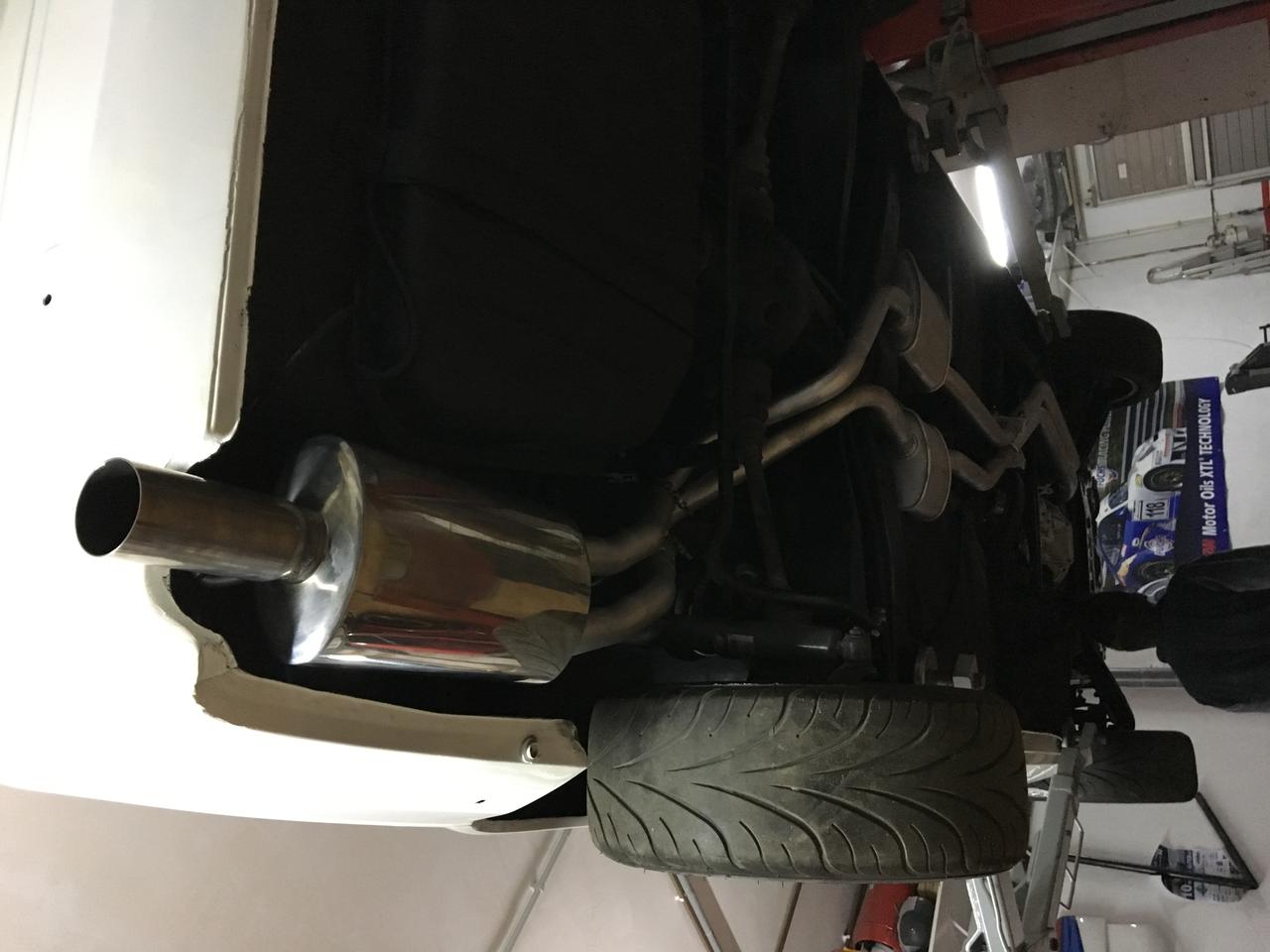 Pero antes teniamos que volver a montar el eje de transmisión y el escape. Y para el escape tuvimos que apañar el tramo entre colectores y silenciadores intermedios, puesto que los colectores eran mas largos y con diferente forma. Además teniamos que añadir una rosca para la sonda lambda:
