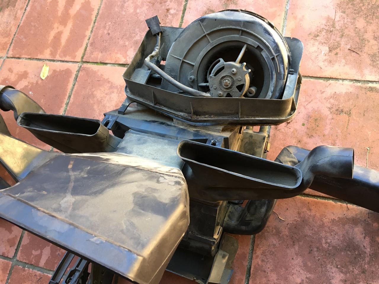 Luego pasé al interior, donde havia que montar todo el sistema de calefacción y aire frio de un coche donante, porque el mio llevaba aire acondicionado, que es un sistema de tubos completamente distinto, y se sacrificó para ahorrar peso y dejar mas espacio en el vano para los itb's y las trompetas.