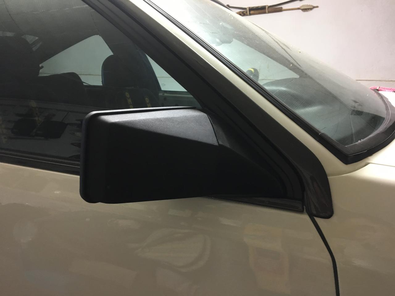 Asi que me puse a restaurar los retrovisores que tenian algunos roces. Los lijé, enmasille y pinte con spray de pintura texturizada: