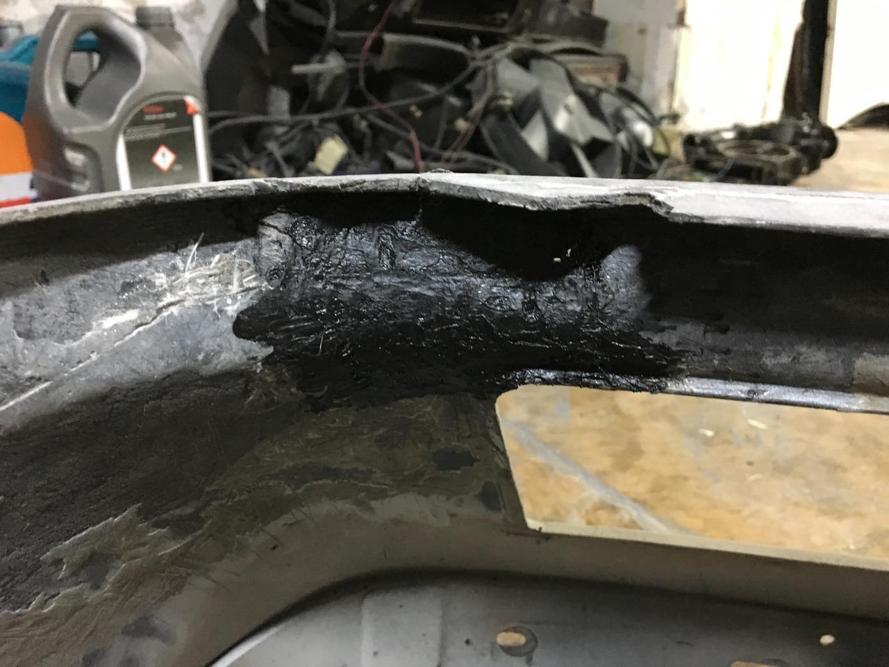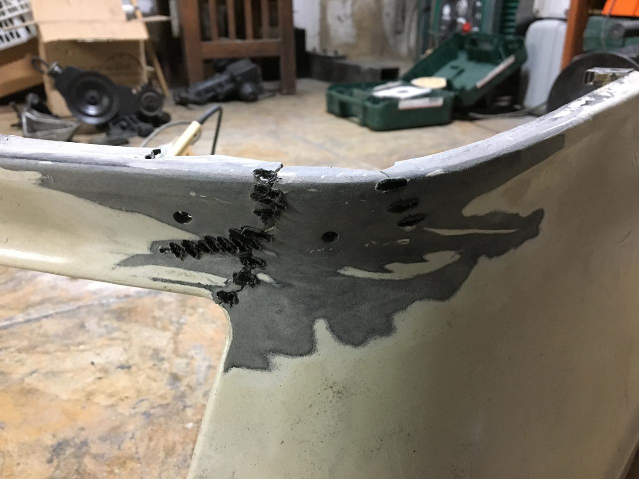 Me quedé en los parachoques, que estaban hechos polvo los pobres. Primero los reparé con unas barritas de plastico y fibra, y un soldador de estaño, la verdad es que funciona muy bien el tema: