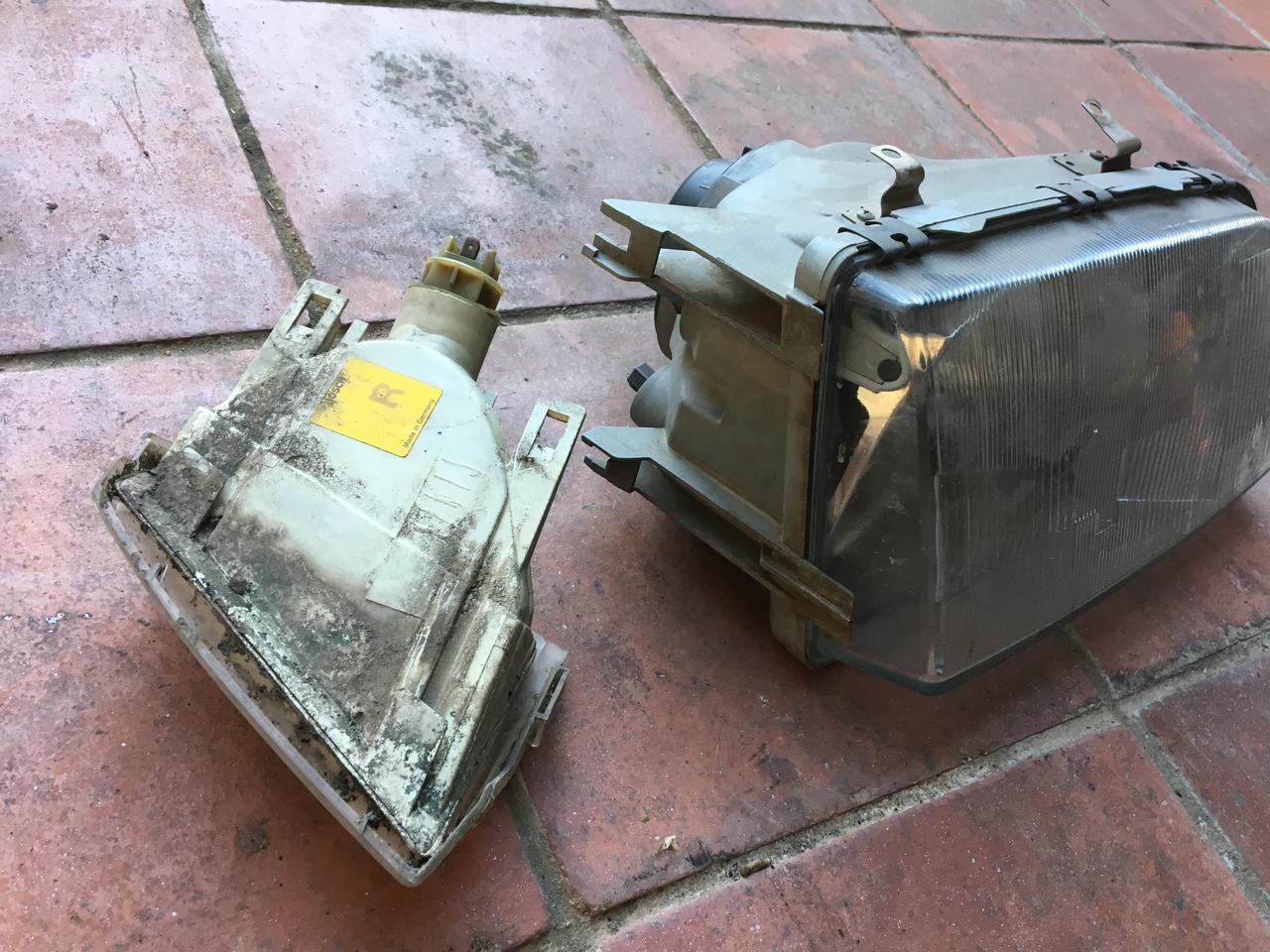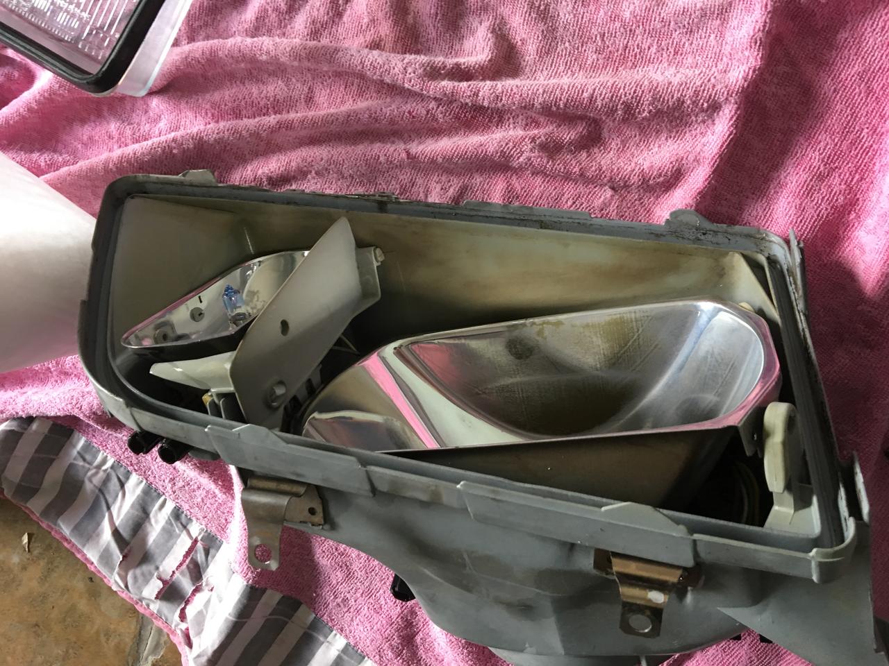 Los faros los desmonté completamente y llevé a recromar las parabolas que estaban corroidas, el resto bien limpio y adentro:
