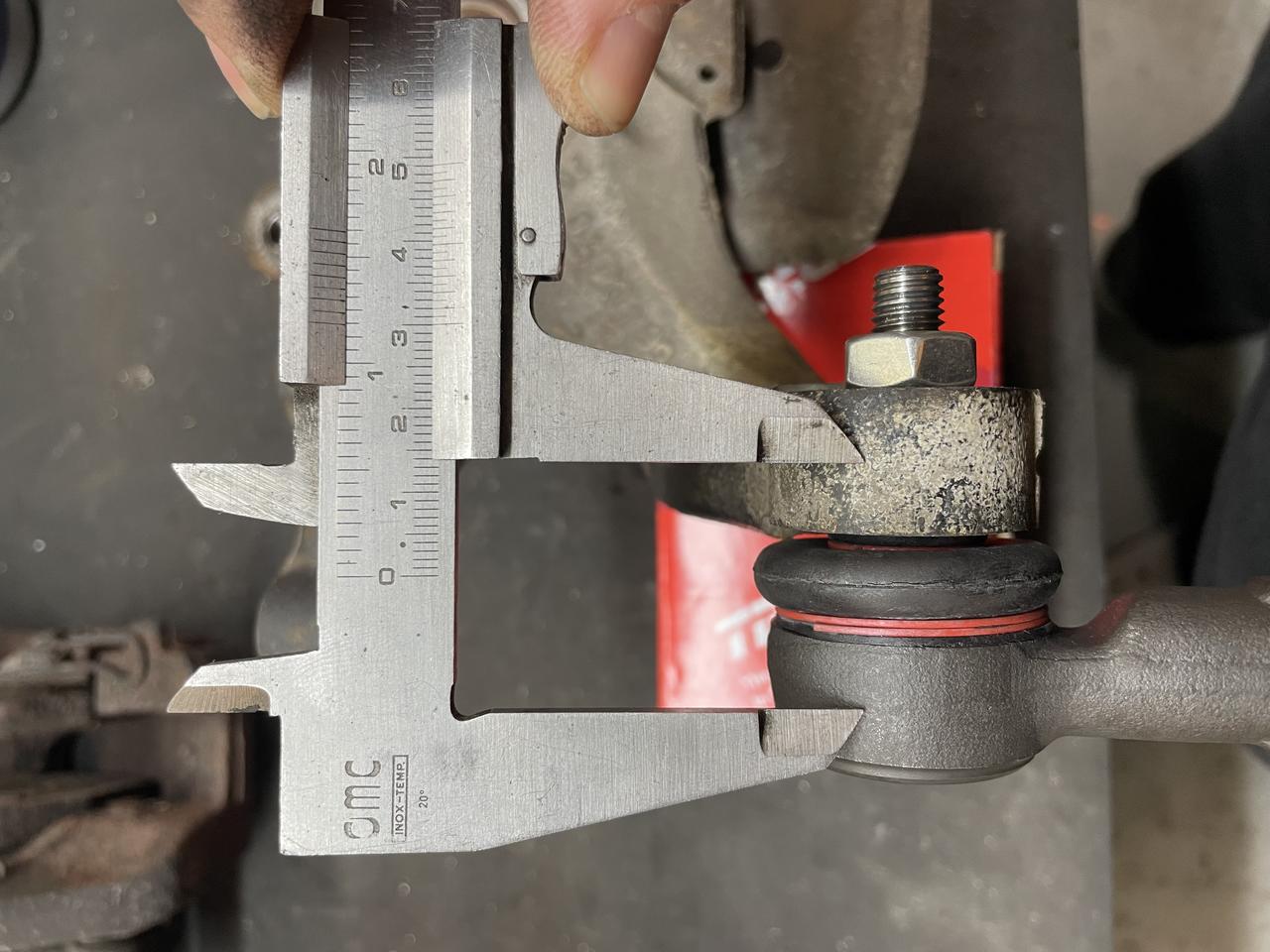 Al final, son aproximadamente 30 mm del centro de pivote al centro de la bieleta. Esa distancia por duplicado, me deja en los 60 mm que se ha bajado el eje originalmente, por lo que devuelvo el coche a su condición de bump steer original, aproximadamante.