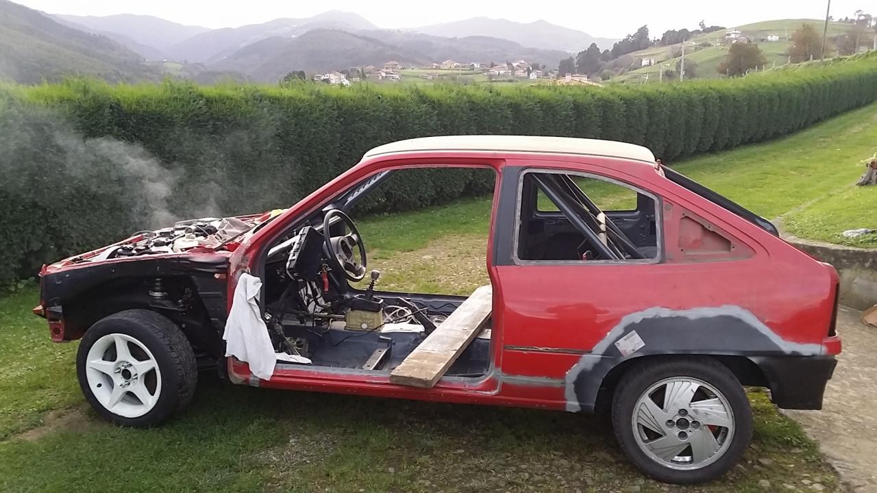 Con todos los liquidos puestos y el montaje provisional de la palanca de cambio y la linea de escape ya pudo moverse por su propio pie y ya vio la luz del dia. El humo es la manta termica del escape en periodo de asentamiento...xD