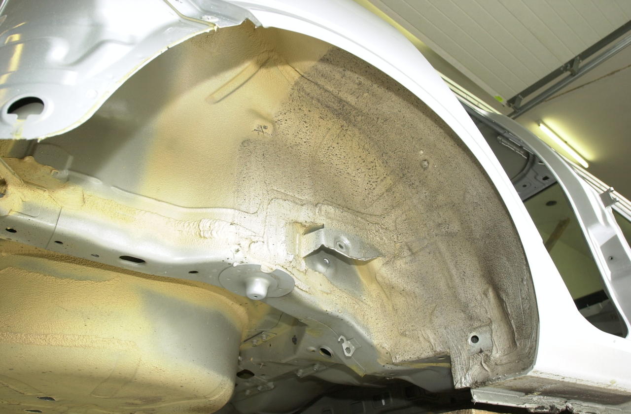 Aquí aún faltan zonas por sellar a brocha, pero esto con antigravilla tiene un resultado más que satisfactorio:
