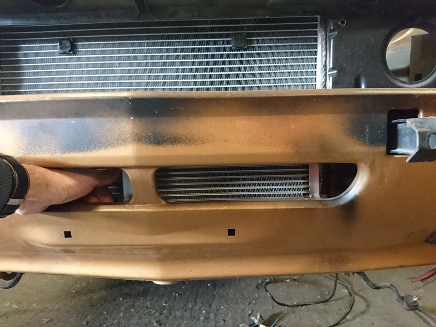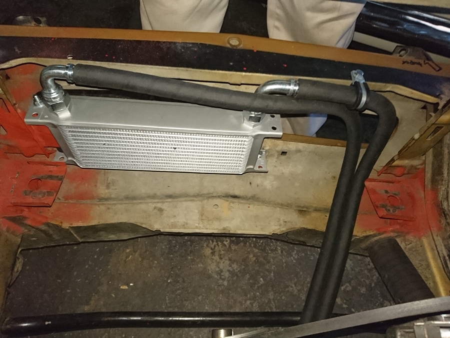 Radiador de aceite de un tamaño contenido. Viendo que nunca se calienta el del xe de serie que es más pequeño... éste tiene que ir sobrado.
