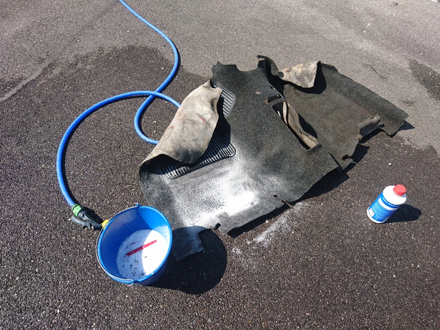 moqueta negra que le compré a un alemán, que el muy cerdo debía plantar patatas en ella. La mía original de color dorado no terminaba de convencerme, y limitaba mucho el color que le ponga a la carrocería.