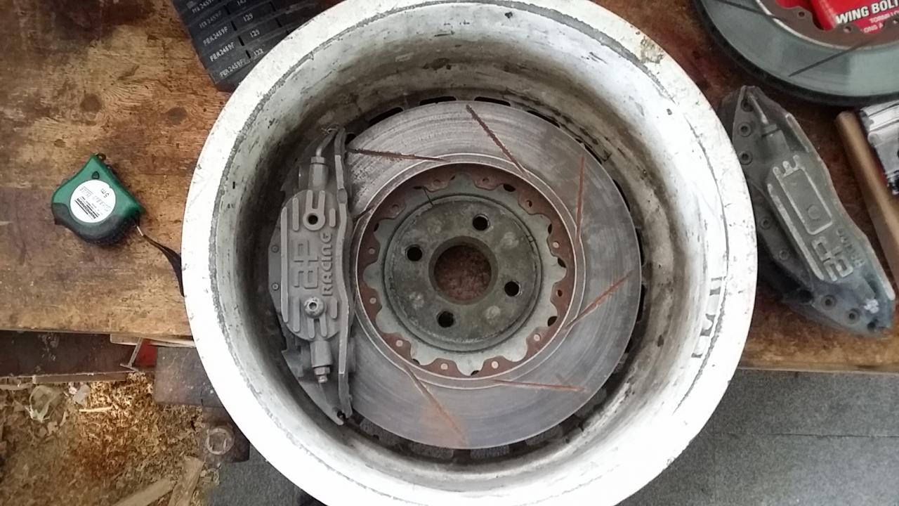 Tras mucho tiempo buscándolos, frenos en casa, unos ap racing 5000 de la época, con discos de 315 y dos juegos de pastillas nuevas