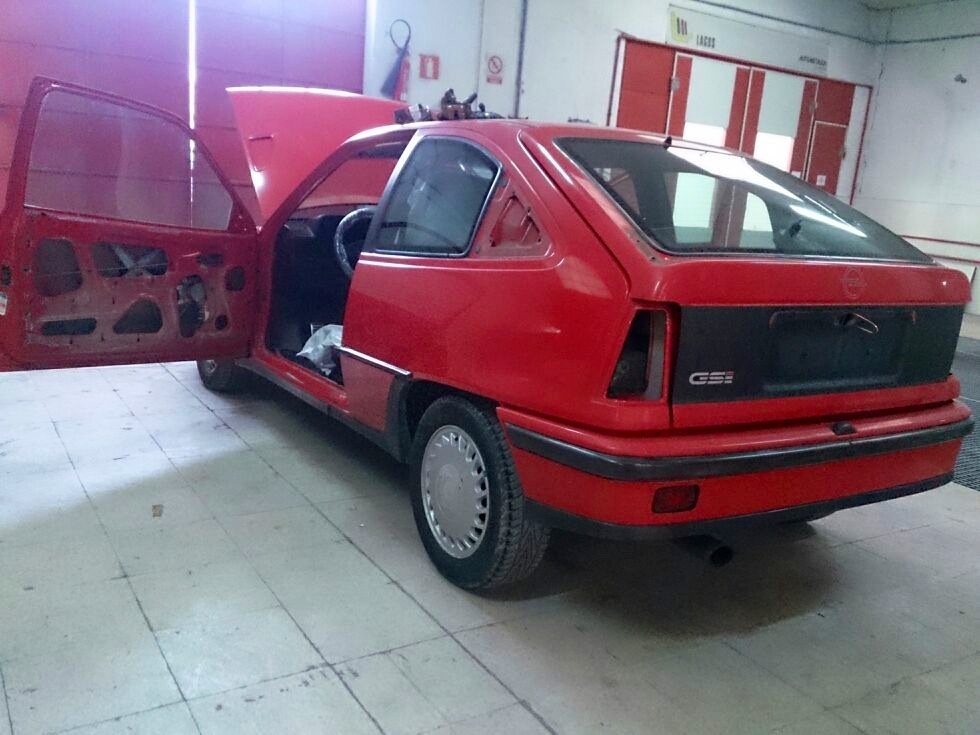 Bueno señores!! Pues despues de mucho tiempo sin aparecer por este post por falta de presupuesto y tiempo, me alegra daros la noticia de que desde este viernes el kadett esta en el chapista, donde se va a pasar dos largas semanas. Van a reparar toda la chapa, estirar el morro y a pintarlo del rojo original, bicapa eso si jaja y tambien a pintar los plasticos de negro texturado, aunq no podre ir a ver los avances del coche xq me pilla bastante a desmano el taller, el chico que se va a encargar es amigo mio y me ira pasando fotos del proceso, asik segun las valla recibiendo asi os las pondre aqui para que podais verlo.