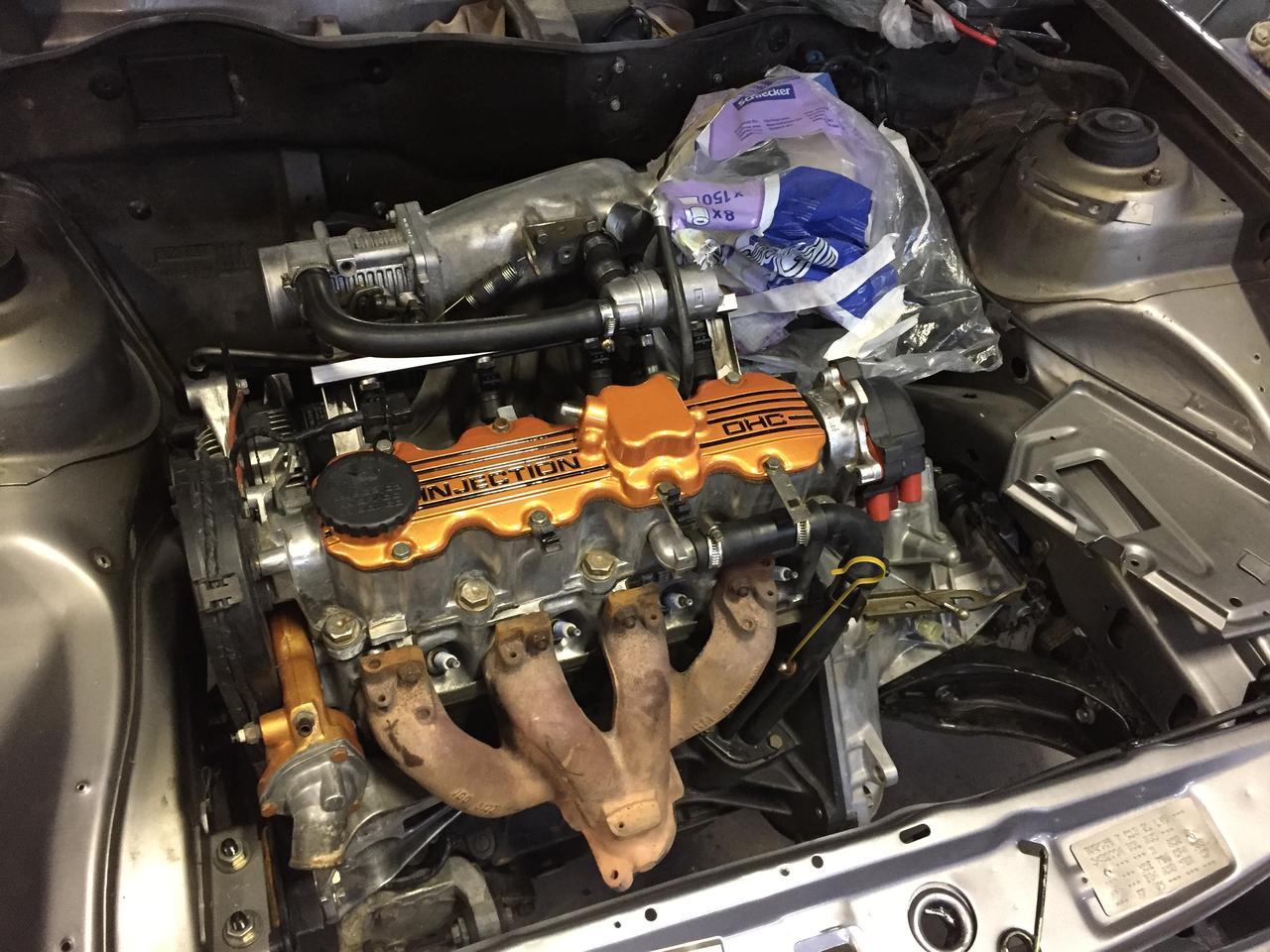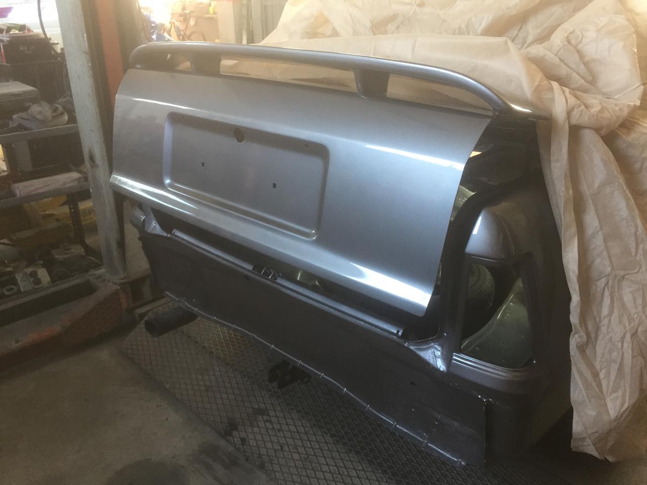 este finde le pude dedicar 3 horas. Está el escape puesto, la junta del carter montada de nuevo (la puse antes del swap y perdía justamente encima del colector con su correspondiente olor a frito), desmonté el radiador de la cale y, le pusimos otra vez el alerón. ya puede despegar !!!