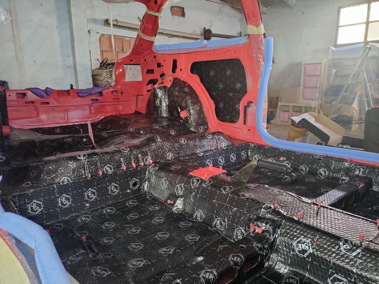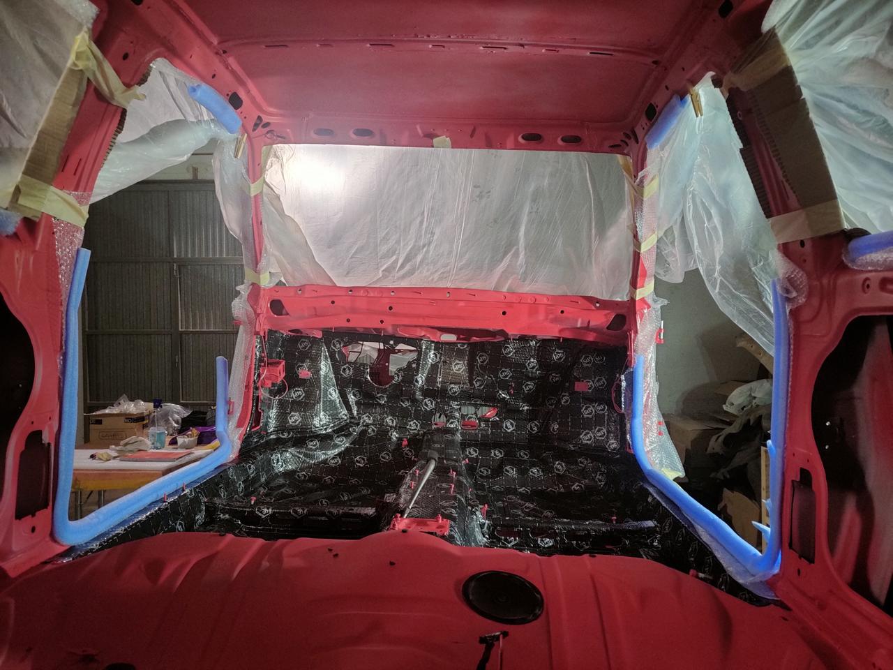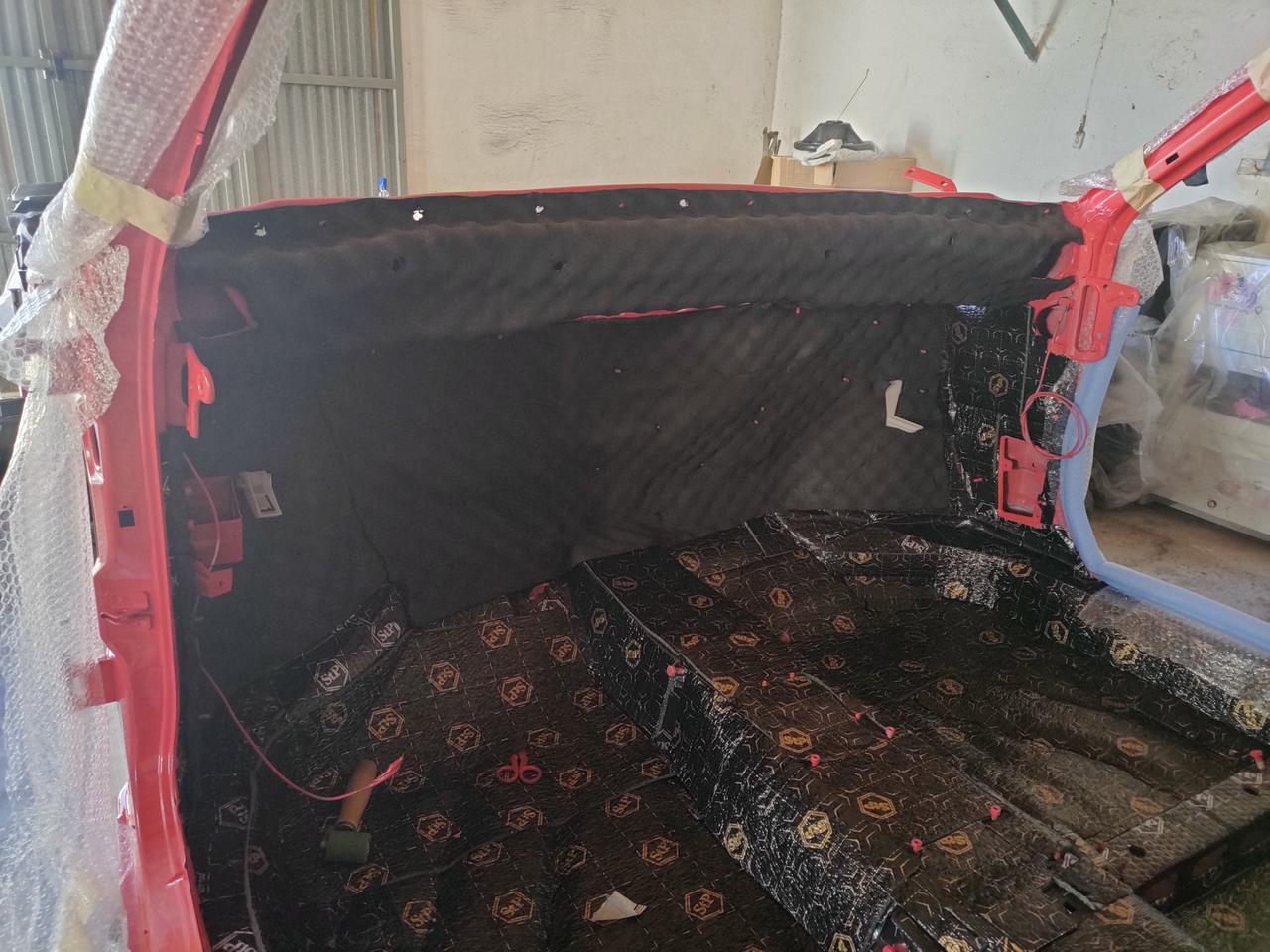 En el interior de los pases de ruedas traseros, metimos otro tipo de aislante , más gordo, que no hay problema de espacio.