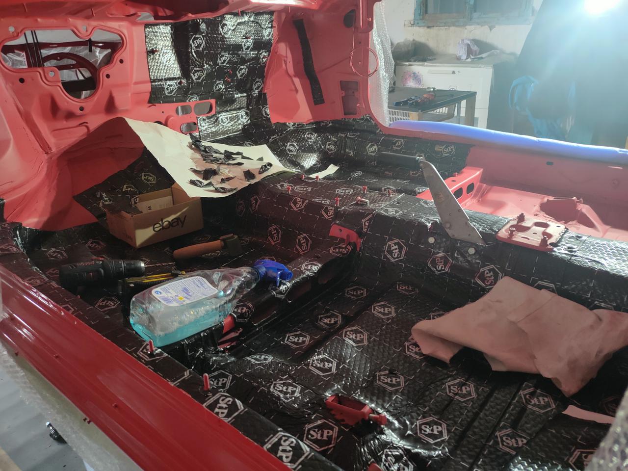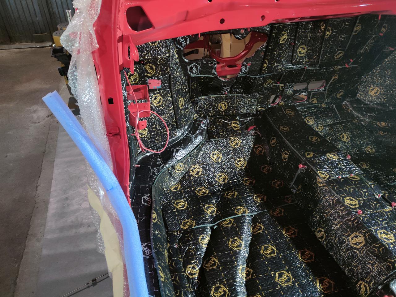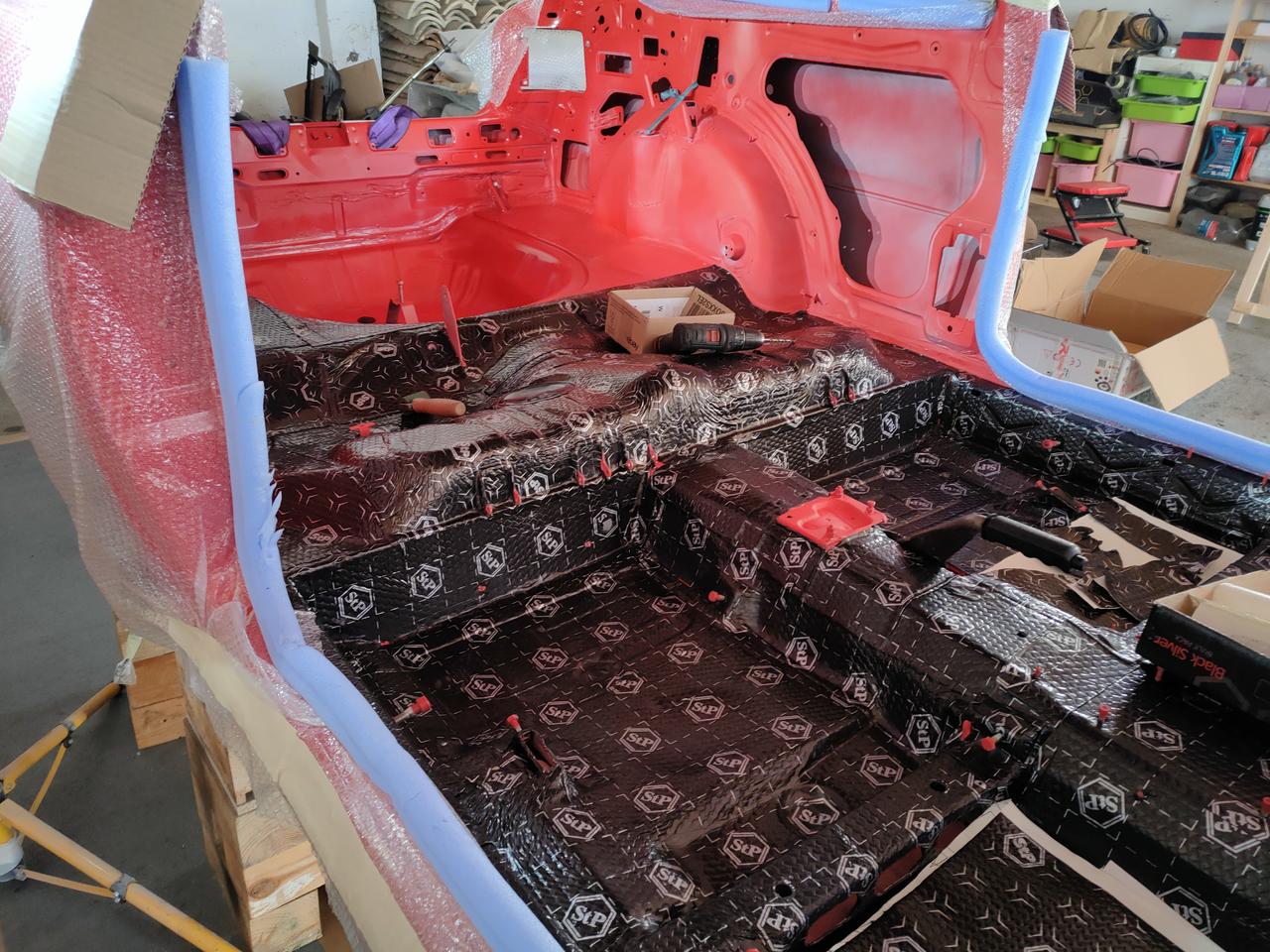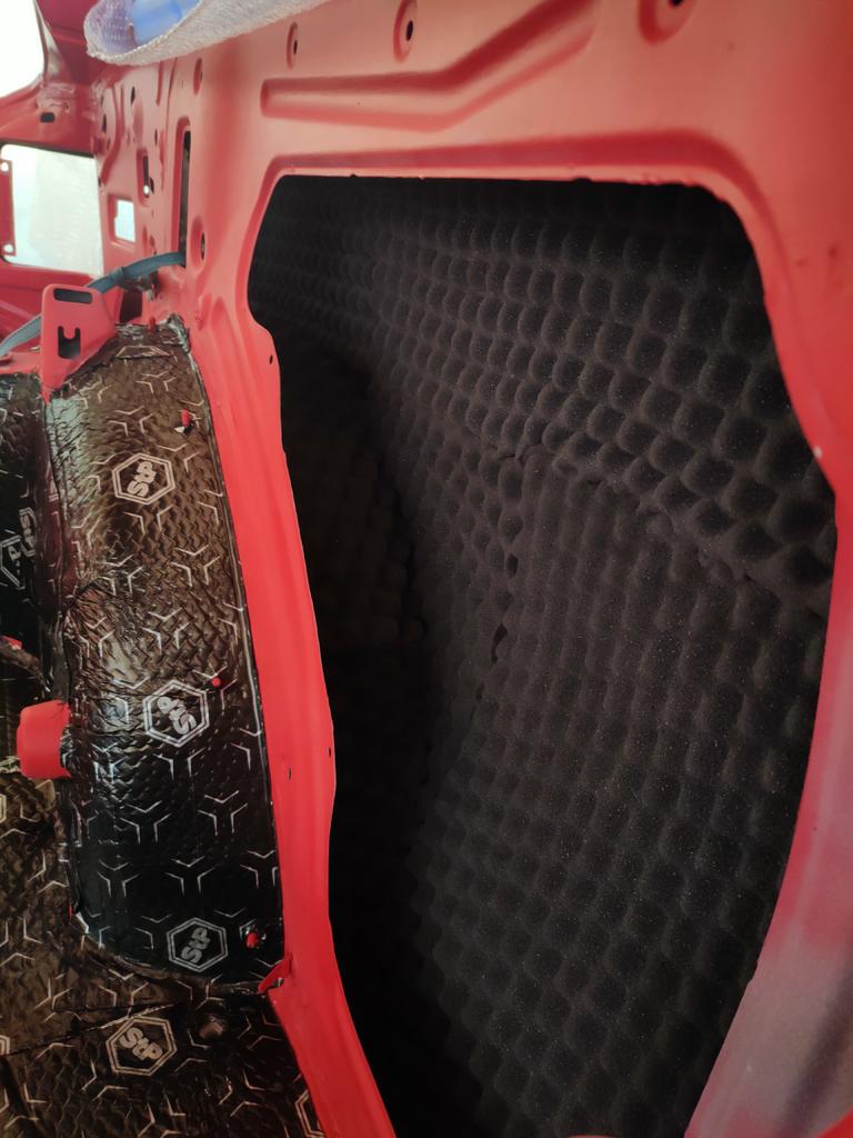 En el interior de los pases de ruedas traseros, metimos otro tipo de aislante , más gordo, que no hay problema de espacio.