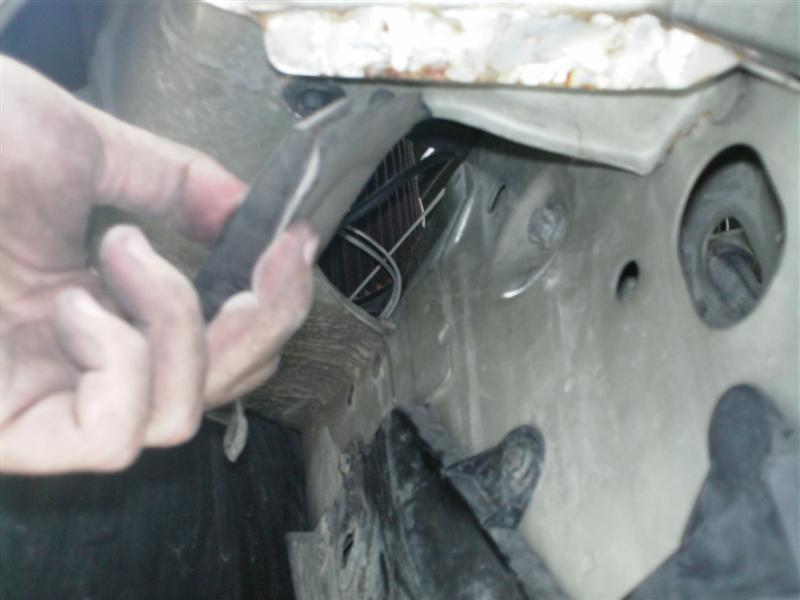 una pieza de goma que protege la zona del filtro de aire de la zona del paso de rueda