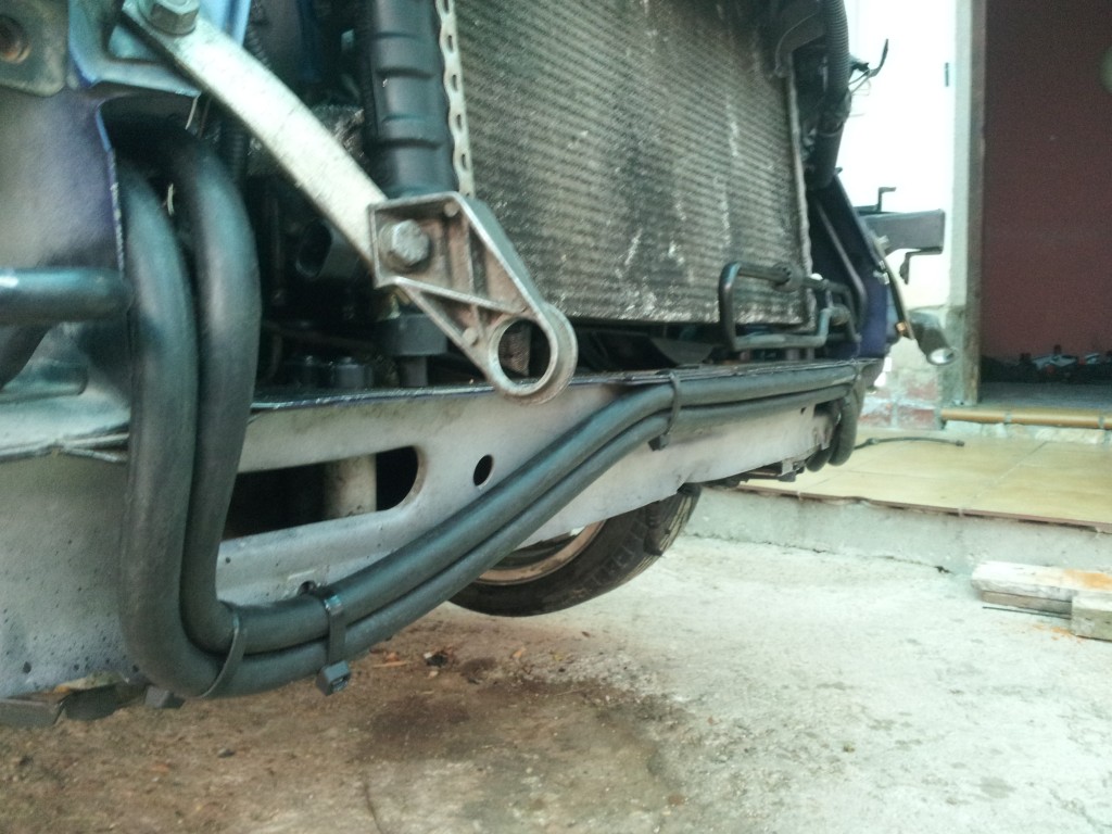 Aquí se puede ver también los tubos nuevos para el radiador de aceite y su nueva casa..