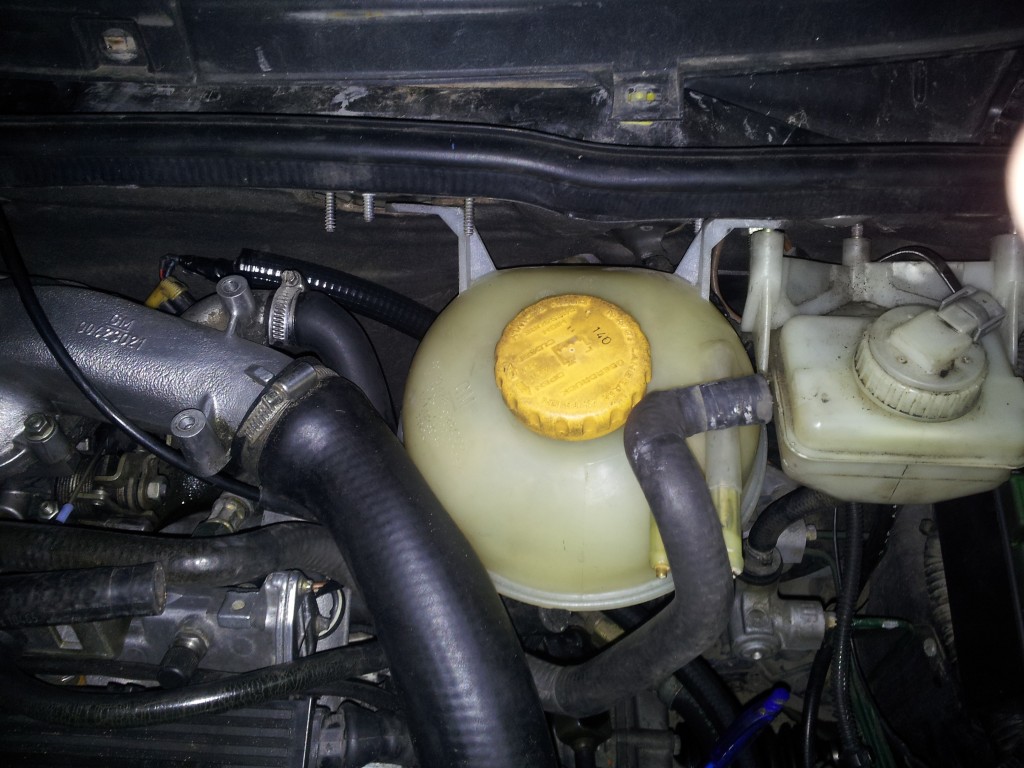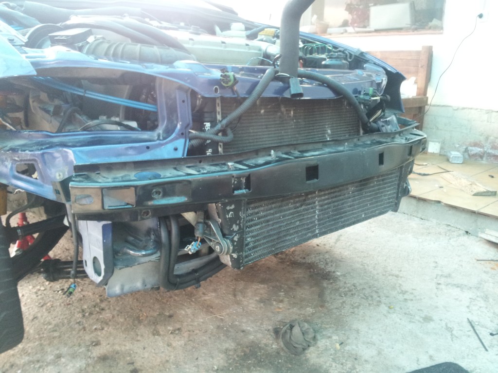 Bueno, pues actualizo un poco esto que he podido adelantar algo con unos días de vacaciones! Ya tengo colocado el radiador y todos los manguitos y el vaso de expansión en su nuevo emplazamiento, con lo que el sistema de refrigeración queda zanjado. También he colocado el inercooler, de un modo bastante curioso y encaja a la perfección! Toy orgulloso de mi soporte de intercooler xD