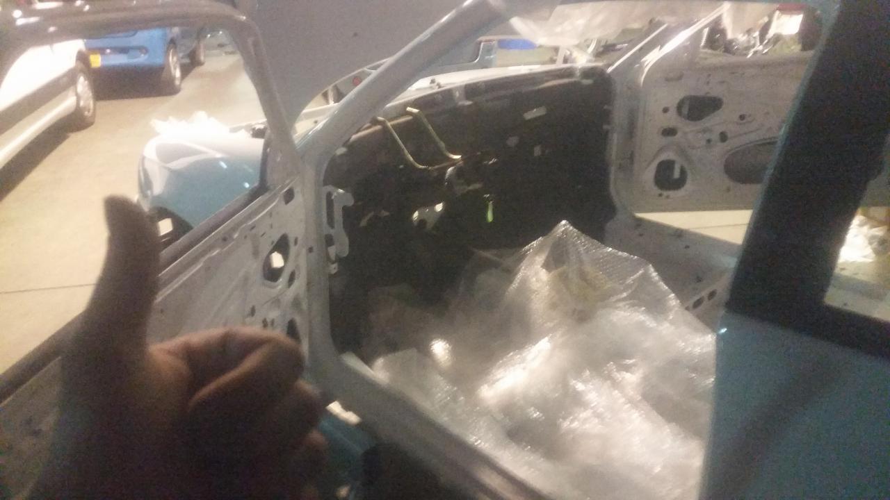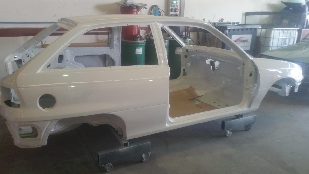 buenas tardes! tenemos buenos avances,me acaba de mandar las fotos el de taller de pintura,la carrocerìa esta pintada y casi todo listo para bajarla al taller,tenemos que esperar por los pasadores de las bisagras que no llegan hasta el martes,asi poner las puertas.llegados a este punto creo que va a ser màs llevadera la cosa,y ver el proyecto finalizado,ahora llega lo bueno,espero poder bajarla lo antes posible para darle caña al asunto.saludossss