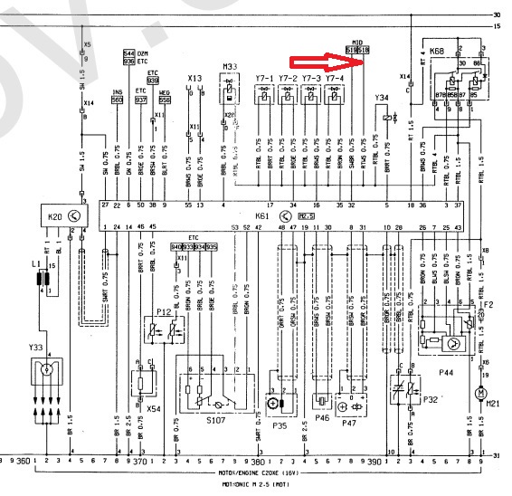 Siguiendo el rojo-blanco en el esquema acaba en la mid..., señalado dicho cable en el esquema :confused:
