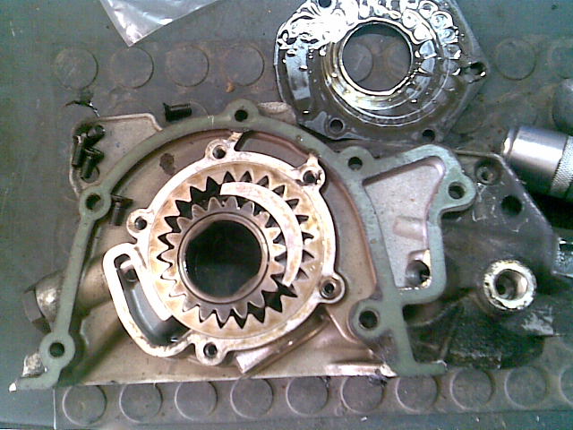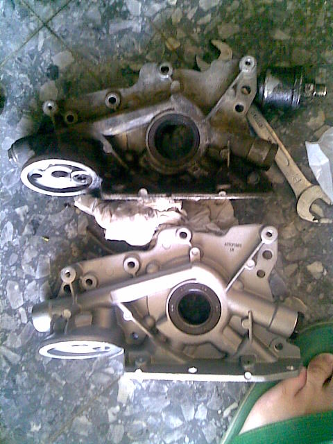 La bomba de aceite vieja desmontada, porque vereis, la nueva la he ido a montar pero al moverla suena un cli, cli cli como si hubiera algo suelto, muevo la bomba vieja y no suena nada, entonces por eso la he abierto, a ver si me podeis decir el porque, y otra cosa mas estos tornillos que señalo en las fotos para que son??.