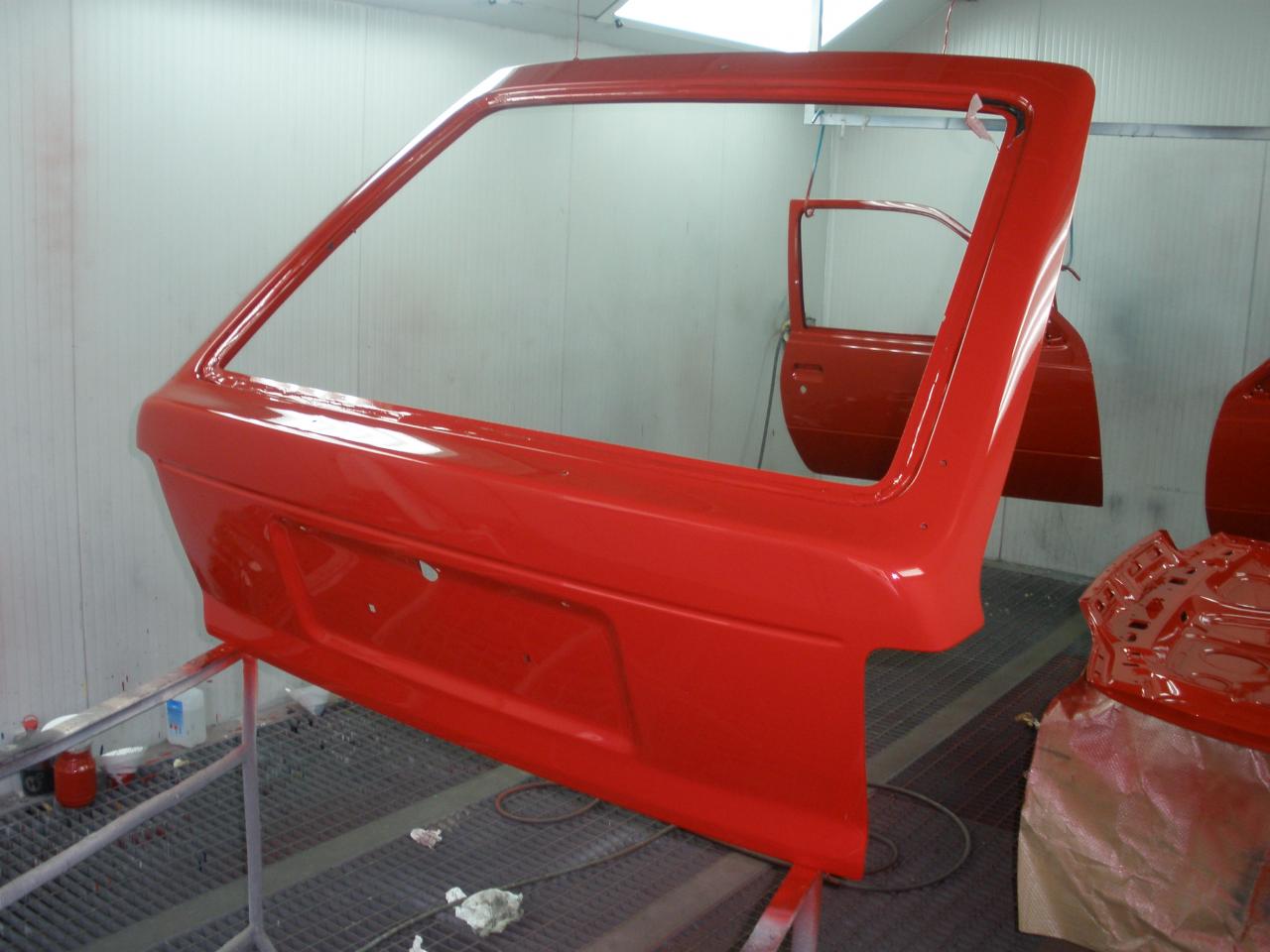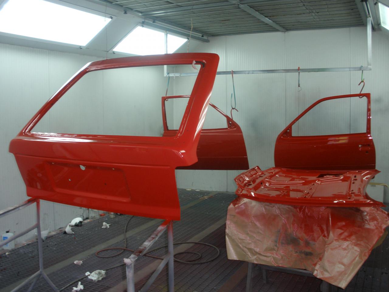 Bueno señores, pues tenemos novedades, el portón del maletero, las puertas y el capó han pasado por la cabina de pintura!! Después de currar me pasé por el taller y mi sorpresa fue mayúscula, lo mire todo muy por encima pero el resultado me pareció bueno, quedaron algunas pequeñas motas en alguna zona interior del capó, pero nada del otro mundo