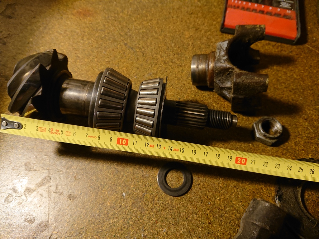 Muchas webs y foros por ahí hablando de validez de desarrollos y grupos... pues sí, es información válida, pero lo que no te dicen es que no entre todos los coches son compatibles. Después de montarle los rodamientos nuevos y tomar todas las mediciones... voy a darle el par de apriete al eje del piñón y veo que casi no tengo rosca para que coja la tuerca. Es unos 10mm más corto que el de Manta.