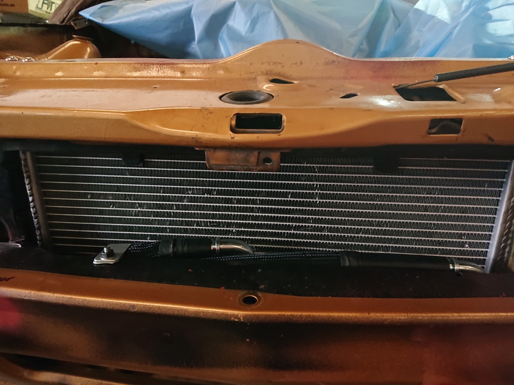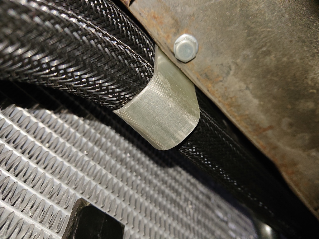 Radiador de aceite y mangueras también terminadas, a falta de crimpar los extremos en prensa.