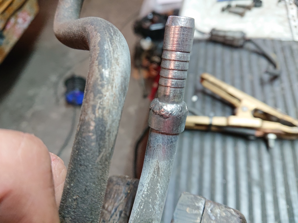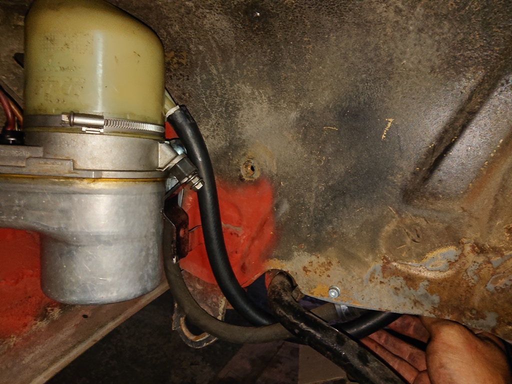 La dirección queda acabada. El retorno tenía distinto diámetro al que lleva la bomba de Astra G, así que para no andar con acoples ni historias le he soldado a TIG una boca de la medida correcta. Cuando mande otro paquete de cosas a bicromatar, allí se irá el tubo a dejarlo bonito.