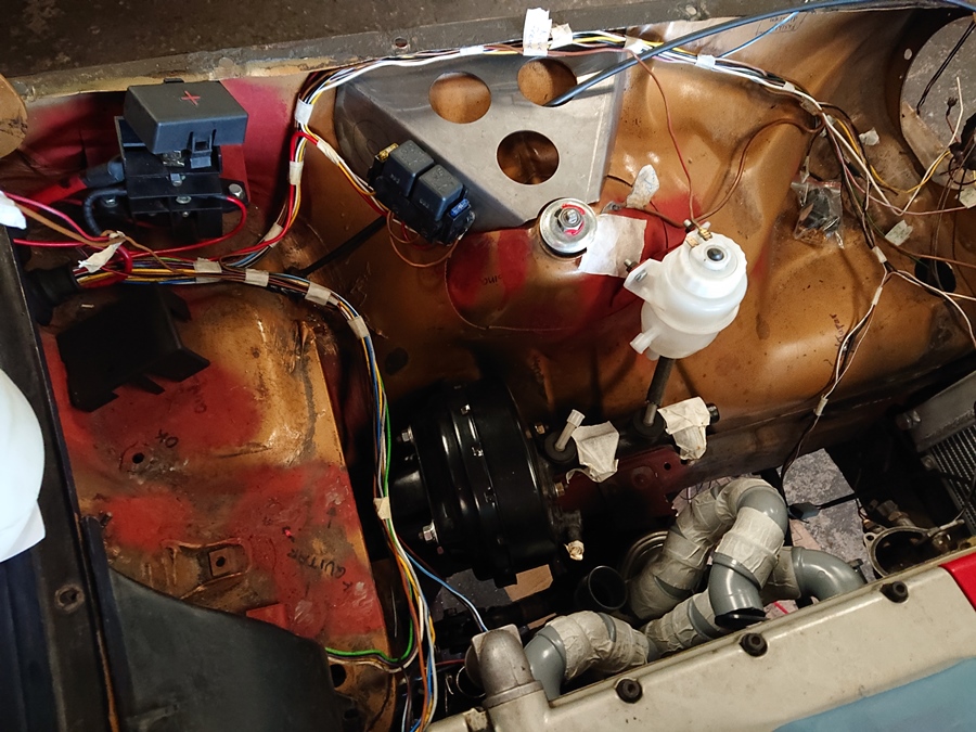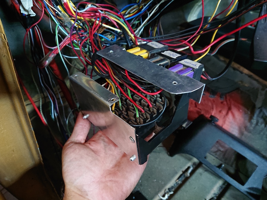 La caja de fusibles ya está ubicada en sitio, con unas pletinas remachadas a ella que a su vez atornillan en el salpicadero.